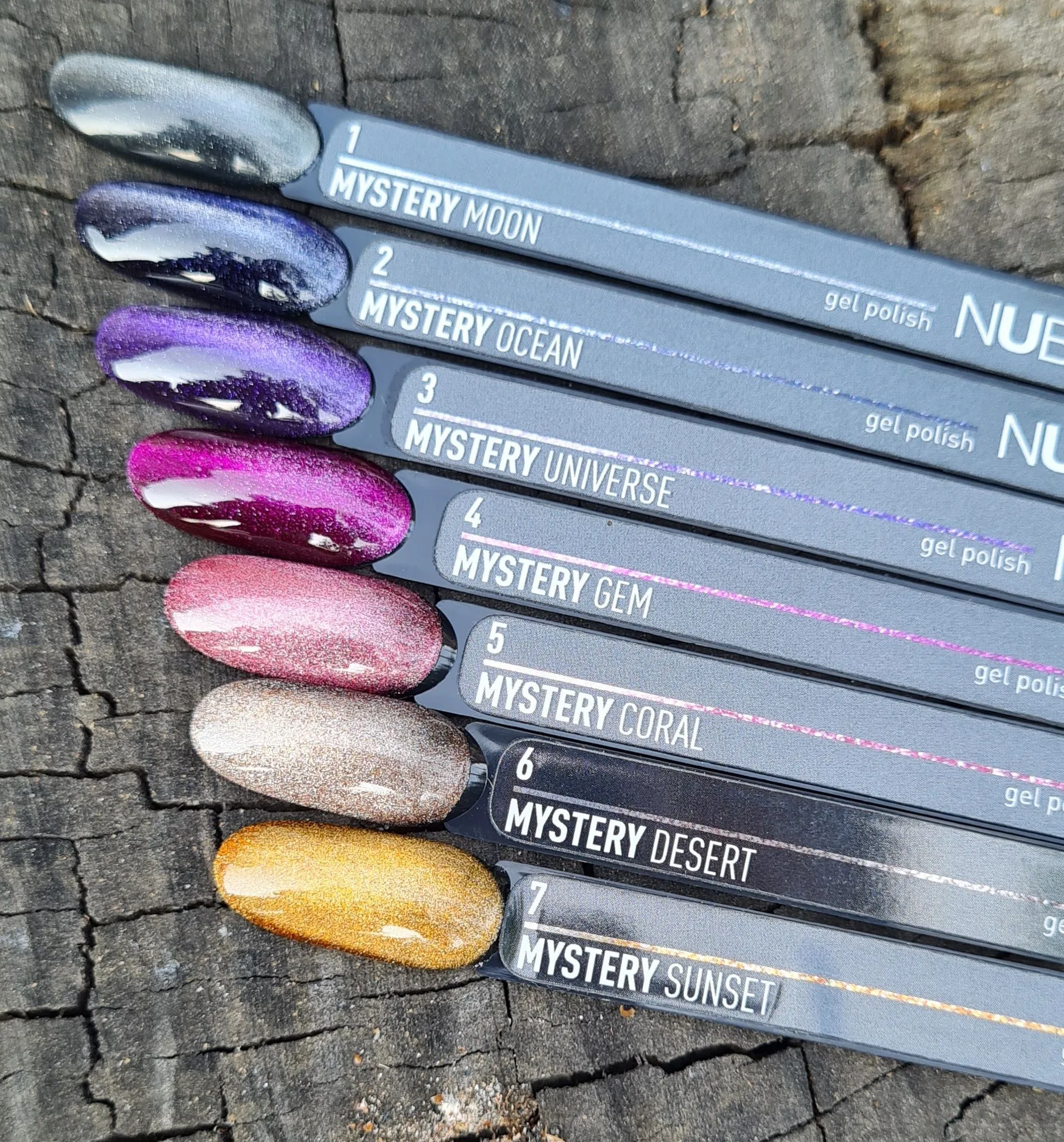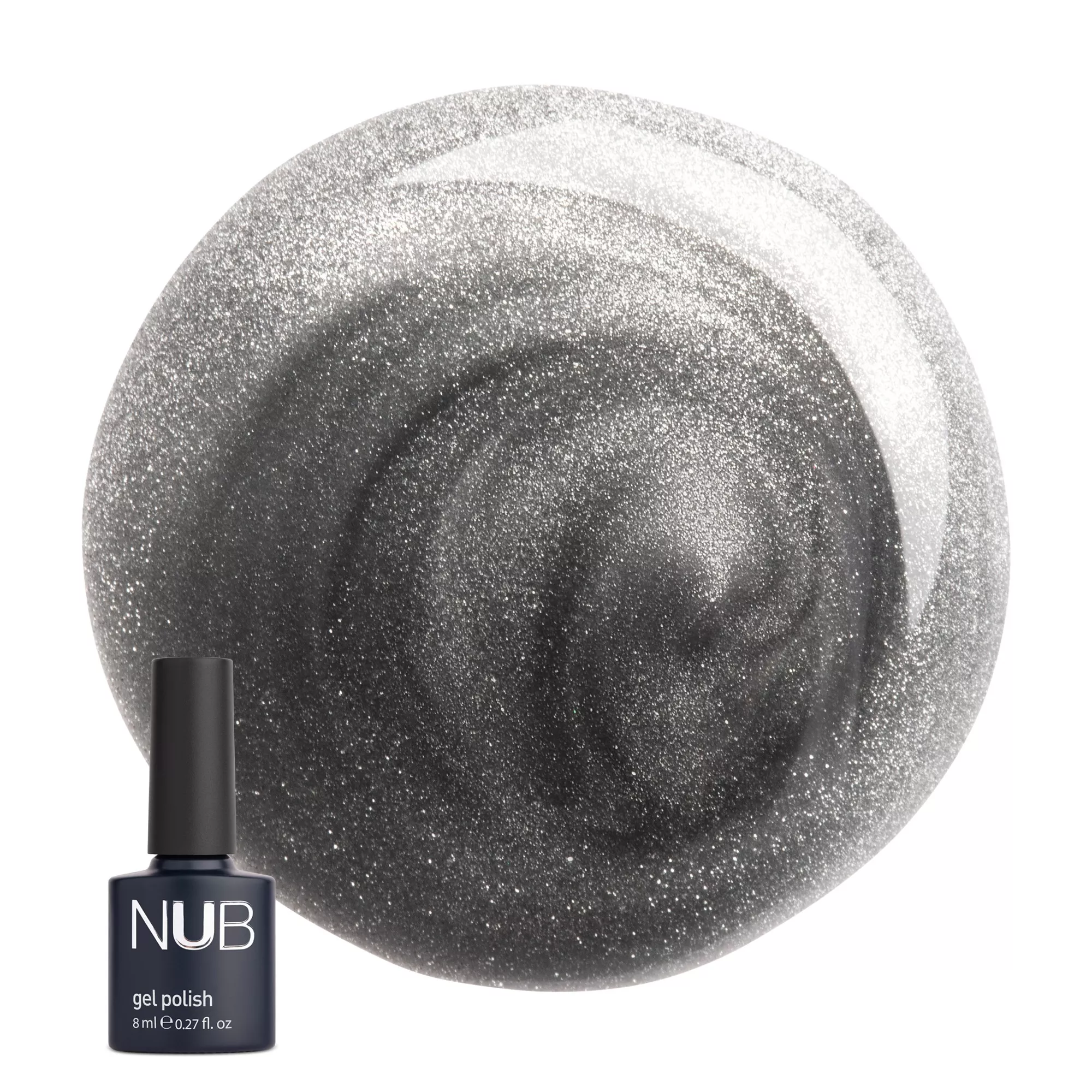 Магнітний гель-лак нового покоління NUB Mystery №01 - темне срібло з відблиском, пропонує майстрам значно більше, ніж просте створення дизайнів з ефектом «котяче око». Металеві частки забезпечують кожному відтінку трендовий, глибокий сріблястий перелив, що захоплює подих. Нова формула дозволяє надзвичайно легко створювати різноманітні візерунки за допомогою магнітів, при цьому не використовуючи «підкладки» іншого кольору – гель-лаки Mystery є абсолютно самодостатнім покриттям. Щільна пігментація, не потребує нанесення основи темного кольору, нігтьова пластина повністю перекривається в один шар; Даний продукт не потребує "чорної підложки "