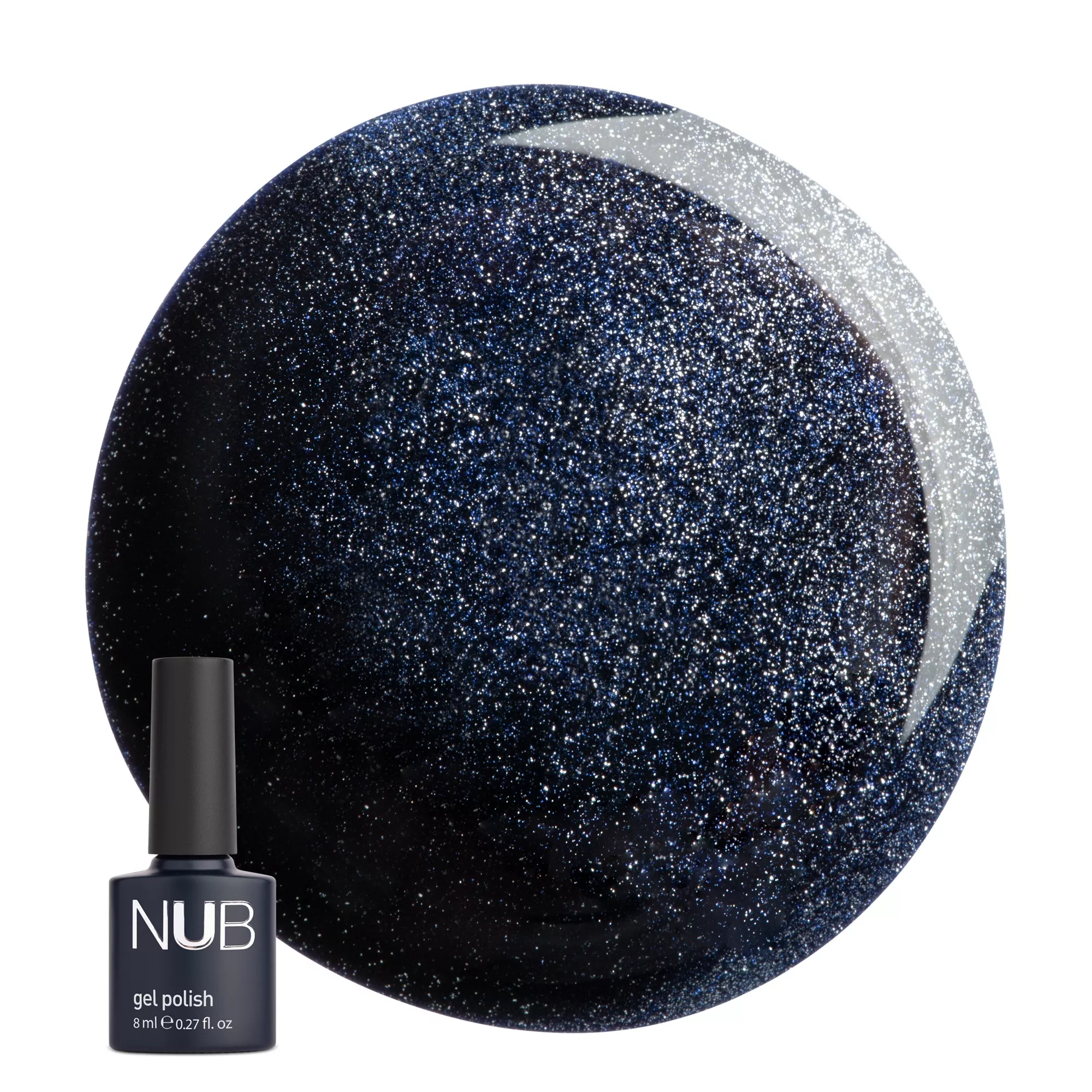 Магнітний гель-лак нового покоління NUB Mystery №02 - синій океан з відблиском, пропонує майстрам значно більше, ніж просте створення дизайнів з ефектом «котяче око». Металеві частки забезпечують кожному відтінку трендовий, глибокий сріблястий перелив, що захоплює подих. Нова формула дозволяє надзвичайно легко створювати різноманітні візерунки за допомогою магнітів, при цьому не використовуючи «підкладки» іншого кольору – гель-лаки Mystery є абсолютно самодостатнім покриттям. Щільна пігментація, не потребує нанесення основи темного кольору, нігтьова пластина повністю перекривається в один шар; Даний продукт не потребує "чорної підложки "