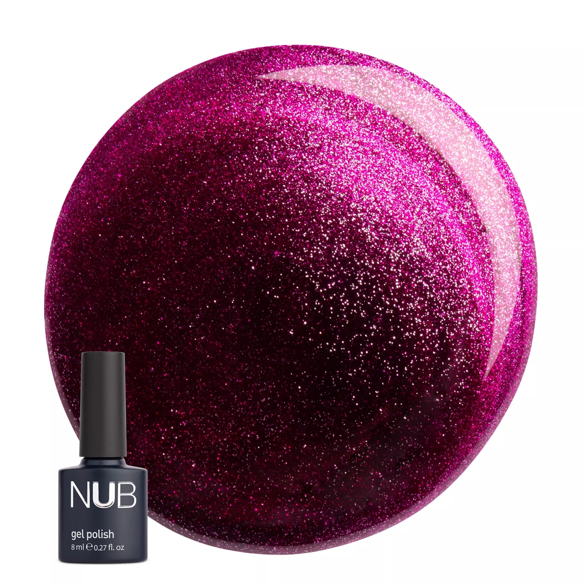 Магнітний гель-лак нового покоління NUB Mystery №04 - фіолетово-рожевий з відблиском, пропонує майстрам значно більше, ніж просте створення дизайнів з ефектом «котяче око». Металеві частки забезпечують кожному відтінку трендовий, глибокий сріблястий перелив, що захоплює подих. Нова формула дозволяє надзвичайно легко створювати різноманітні візерунки за допомогою магнітів, при цьому не використовуючи «підкладки» іншого кольору – гель-лаки Mystery є абсолютно самодостатнім покриттям. Щільна пігментація, не потребує нанесення основи темного кольору, нігтьова пластина повністю перекривається в один шар; Даний продукт не потребує "чорної підложки "