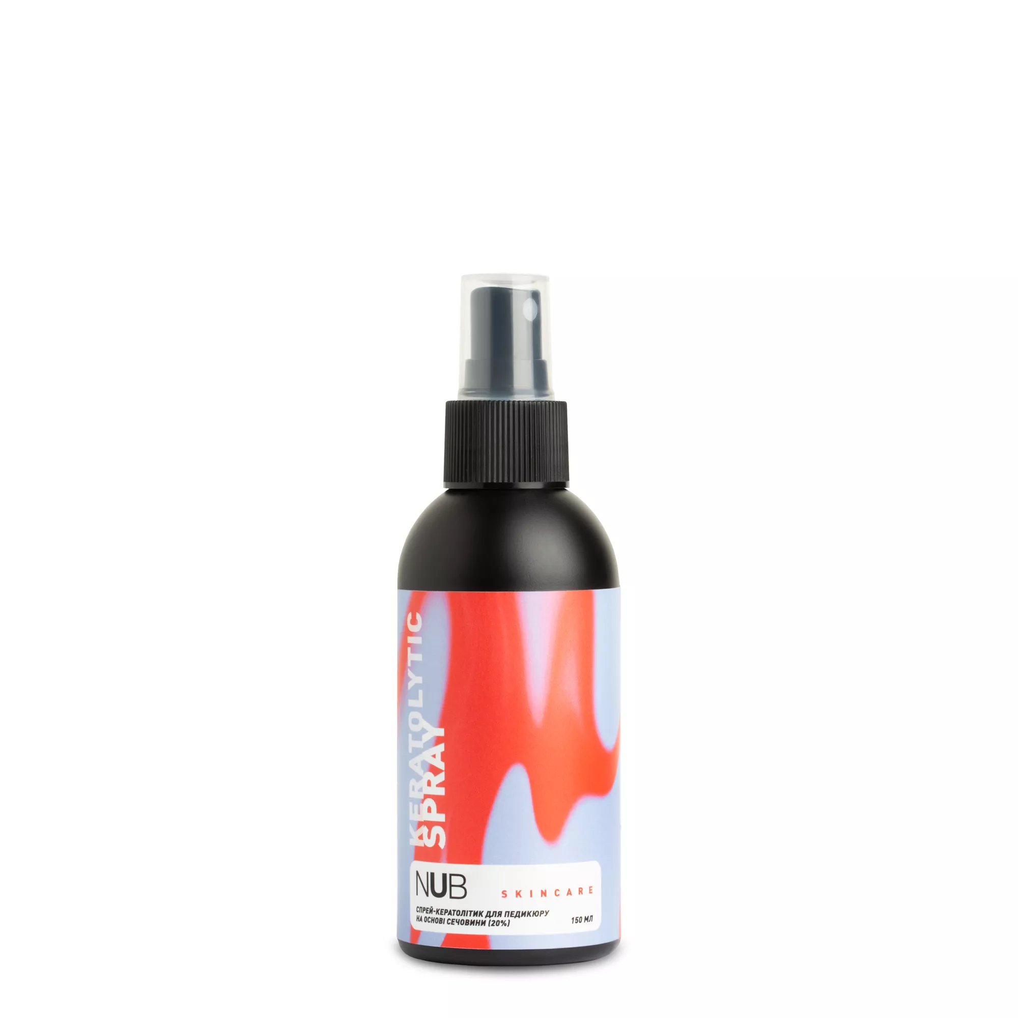 NUB Skincare Keratolytic Spray / Спрей-кератолітик для педикюру на основі сечовини 20% / 150 мл — це професійний кератолітик швидкої дії у формі спрею призначений для зняття ороговілих шарів шкіри стоп. Активною речовиною засобу є сечовина — природний складник шкіри людини; ТЕХНОЛОГІЯ ВИКОРИСТАННЯ 1. Підходить для щоденного використання та як завершення процедури 3. Забрати точкові сильні огрубіння фрезою або пододиском на суху