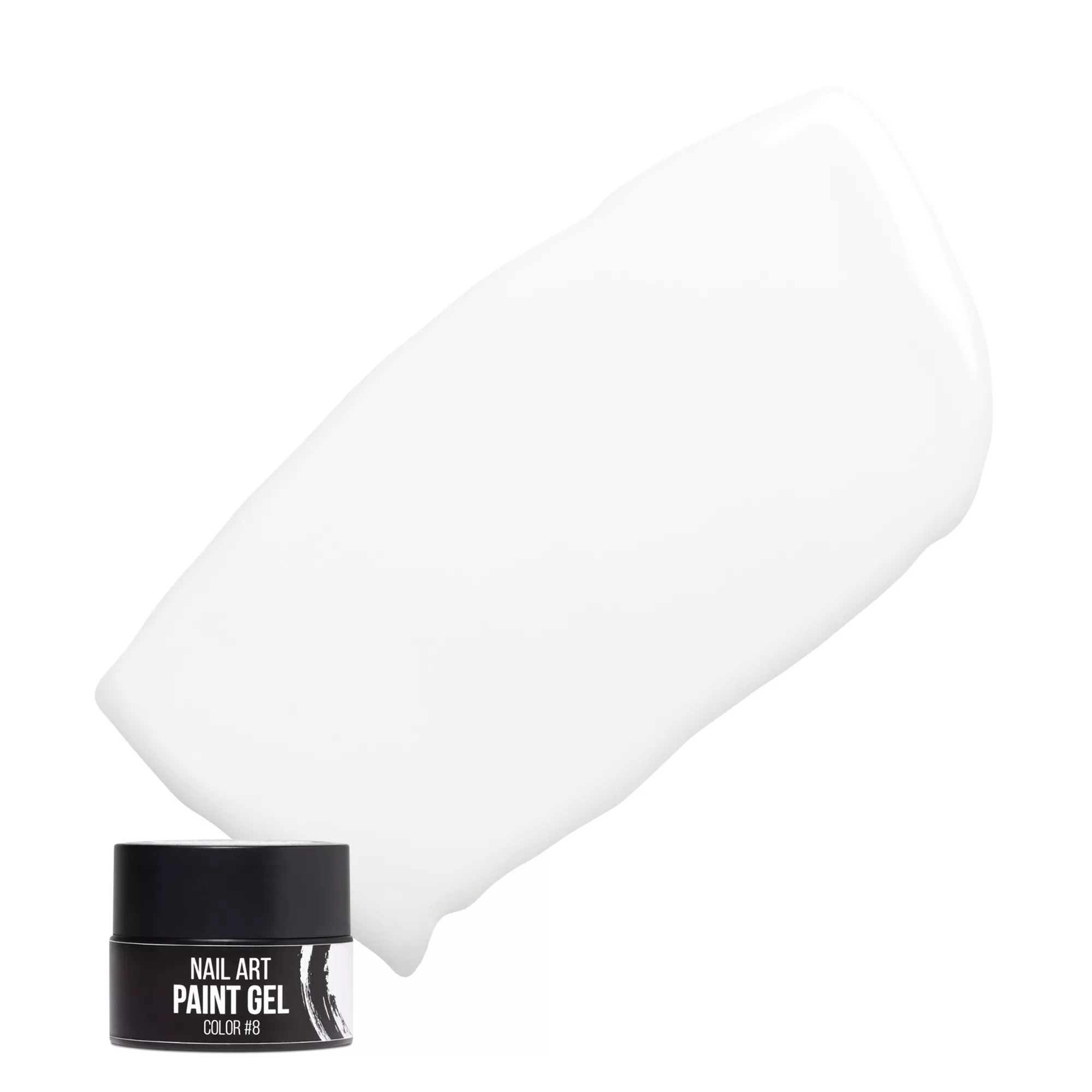 NUB Paint Gel / Гелева фарба для дизайну / 5 г / # 08 -біла Гель-фарба призначена для створення витонченого чи яскравого манікюру. Засіб має консистенцію середньої густини, що дозволяє легко і охайно наносити його на нігтьові пластини. Завдяки швидкій полімеризації в спеціальних лампах (UV і LED), гель-фарба затвердіває всього за 2 хвилини і 30 секунд, забезпечуючи довготривале і стійке покриття, без липкого шару. Вона ідеально підходить для створення як тонких ліній, так і вишуканих видів nail-дизайну, переконайтесь у цьому самі. Надає насичений і стійкий колір вашим нігтям, створюючи ефектний манікюр; ТЕХНОЛОГІЯ ВИКОРИСТАННЯ: 1. Виконуємо манікюр