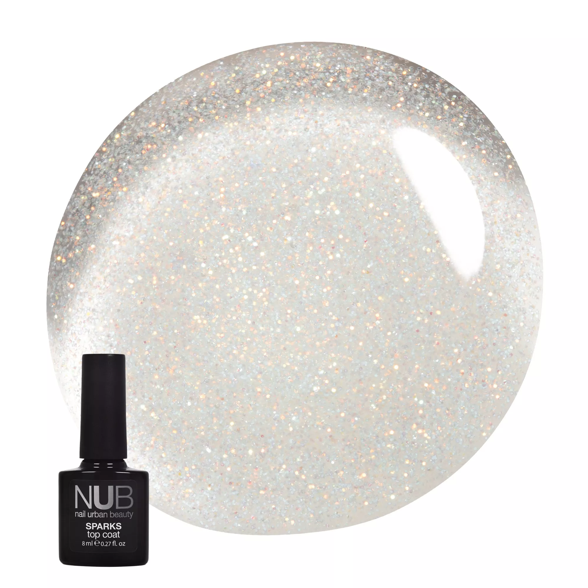 NUB Sparks Top Coat / Закріплювач із шимером / Не має липкого шару / 8 мл / Opal- прозорий містить шіммери з ефектом опалового переливу Серія топів без липкого шару NUB Sparks Top Coat легко перетворить звичайне емальоване покриття на нігтики в блискучу казку! Дуже красиві візуальні ефекти і святкові акценти гарантовані. Крім естетичних властивостей ці топи відмінно вирішують завдання захисту гель-лаків від відколів, механічних пошкоджень і тріщин. Відсутність залишкової липкості дозволяє швидше завершити процес манікюрного дизайну і оцінити результати.