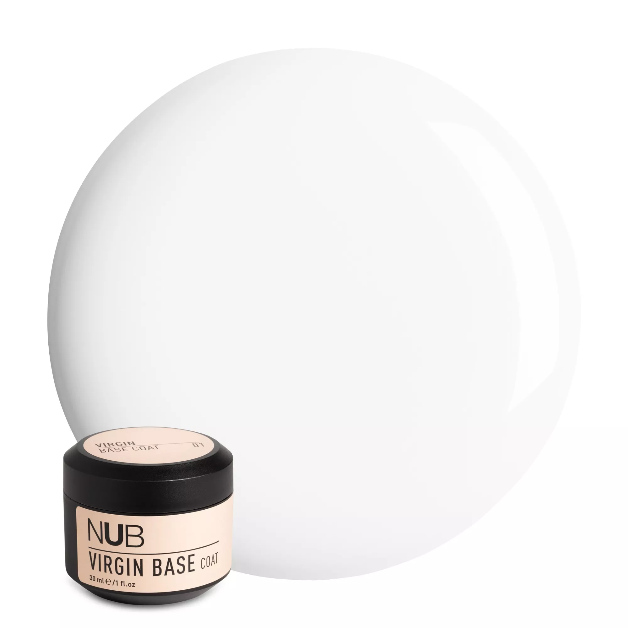 Камуфляжна основа нової лінійки NUB Virgin Base Coat №01- молочна , що створена на основі найбільш сучасної формули каучукової бази, є ідеальним продуктом для поціновувачів натурального вигляду нігтів. Еластична основа одночасно проста в роботі майстра і комфортна для клієнта, дозволяє легко робити вирівнювання та укріплення нігтьової пластини, має низьку температуру при полімеризації й гарантує стійке рівномірне покриття. Поєднує сучасну каучукову основу з камуфляжним пігментом; ТЕХНОЛОГІЯ ВИКОРИСТАННЯ: