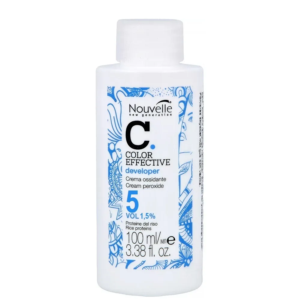 Окислювальна емульсія Cream peroxide Developer з кремообразною, ніжною формулою і густою консистенцією. Окисник змішується в неметалевій ємності з фарбами Nouvelle Hair Color 100 мл, Nouvelle Smart 60 мл, Nouvelle Metallum 60 мл і засобами для освітлення. Після змішування утвориться однорідна робоча суміш, яка легко і рівномірно наноситься на волосся. Має у своєму складі гідролізований рисовий білок, який зволожує шкіру голови і волосся, захищає його від деформації і зовнішніх впливів, надає блиск. В асортименті: 1,5%, 3%, 6%, 9%, 12%. Застосування: Окислювальна емульсія 1,5% (5 Vol), 100 мл Cream peroxide Developer Nouvelle Окислювач змішати з фарбою у потрібній пропорції, залежно від бажаного ефекту. Залежно від продукту пропорція становить 1:1, 1:2.Окислювальна емульсія Cream peroxide Developer Nouvelle