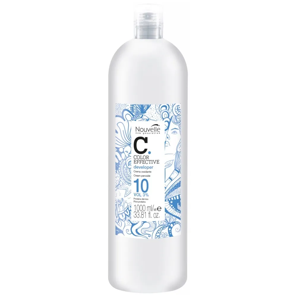 Окислювальна емульсія Cream peroxide Developer з кремообразною, ніжною формулою і густою консистенцією. Окисник змішується в неметалевій ємності з фарбами Nouvelle Hair Color 100 мл, Nouvelle Smart 60 мл, Nouvelle Metallum 60 мл і засобами для освітлення. Після змішування утвориться однорідна робоча суміш, яка легко і рівномірно наноситься на волосся. Має у своєму складі гідролізований рисовий білок, який зволожує шкіру голови і волосся, захищає його від деформації і зовнішніх впливів, надає блиск. В асортименті: 1,5%, 3%, 6%, 9%, 12%. Застосування: Окислювальна емульсія 3% (10 Vol), 1000 мл Cream peroxide Developer Nouvelle Окислювач змішати з фарбою у потрібній пропорції, залежно від бажаного ефекту. Залежно від продукту пропорція становить 1:1, 1:2.Окислювальна емульсія Cream peroxide Developer Nouvelle
