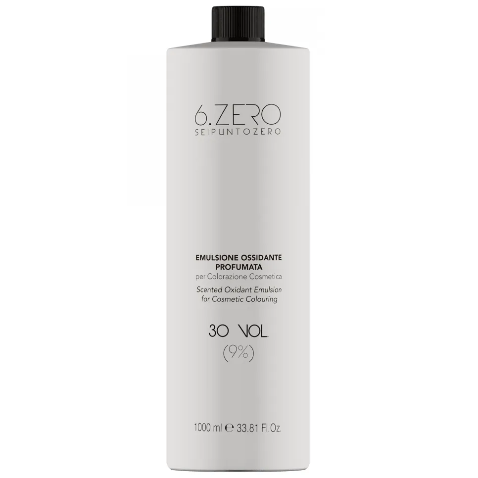 Кремоподібна емульсія-окислювач з ніжним ароматом Emulsione Ossidante Profumata 6.ZERO є ідеальним доповненням до фарби KROMSIDE 6.ZERO. Вона покращує її властивості, має кондиціонувальну та захисну дію, зберігаючи зволоження та блиск волосся під час процедур. Засіб характеризується високою стабільністю, дозволяє вільно фарбувати або знебарвлювати з повною повагою до волокон волосся. Окислювальні емульсії представлені в асортименті: 1,5% (5 Vol), 3% (10 Vol), 6% (20 Vol), 9% (30 Vol), 12% (40 Vol). Всі окислювачі змішуються між собою для отримання проміжних процентних співвідношень. Застосування: для досягнення бажаного результату фарбування або освітлення волосся, вибирайте відповідний відсоток окислювальної емульсії. Пропорції змішування зазначена в інструкції щодо застосування барвників.Окислювальна емульсія Emulsione Ossidante Profumata 6.ZERO SEIPUNTOZERO