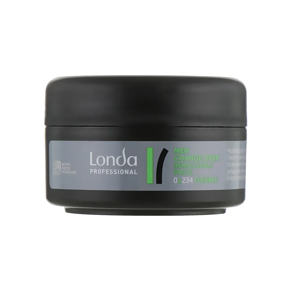 Лінія MEN допоможе Вам при моделюванні чоловічих зачісок. CHANGE OVER - це професійна пластична паста еластичної фіксації. Дозволяє міняти стайлінг, відкриває можливості для сміливих експериментів. Особливості продукту: Паста еластичної фіксації з можливістю подальшого рестайлінгу (level 1), 75 мл Remoldable Paste CHANGE OVER MEN Londa Professional Застосування: Паста еластичної фіксації з можливістю подальшого рестайлінгу (level 1), 75 мл Remoldable Paste CHANGE OVER MEN Londa Professional Розтерти долонями та нанести на сухе волосся для створення текстури. Дозволяє з легкістю змінювати стиль.Паста еластичної фіксації з можливістю подальшого рестайлінгу (level 1) Remoldable Paste CHANGE OVER MEN Londa Professional