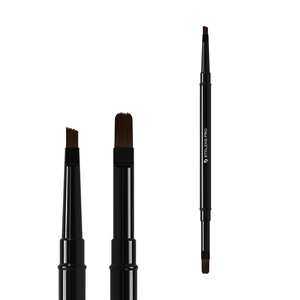Нові двосторонні пензлі EXPERT - інноваційне рішення, за допомогою якого зручно поєднувати різні техніки нанесення матеріалу, це прискорює процедуру і надає більше точності. Знімні робочі частини, міцний алюмінієвий корпус та нейлоновий ворс — довговічні й зручні. Інструмент з двома робочими сторонами влаштований за принципом 2 в 1. Вони легко ховаються всередину ручки, захищають щетинки від пошкоджень і забруднень. Майстер дістає потрібну частину і фіксує зовні, а після використання насадка перевертається і ховається назад. Конструкція виключає потребу в ковпачках, продовжує термін служби та спрощує зберігання. NBE-06/10 - максимальний комфорт: Особливості продукту: Пензлик двосторонній EXPERT для гелю 11 мм / для гелю 7 мм (NBE-06/10) STALEKS PROПензлик двосторонній EXPERT для гелю 11 мм / для гелю 7 мм (NBE-06/10) STALEKS PRO