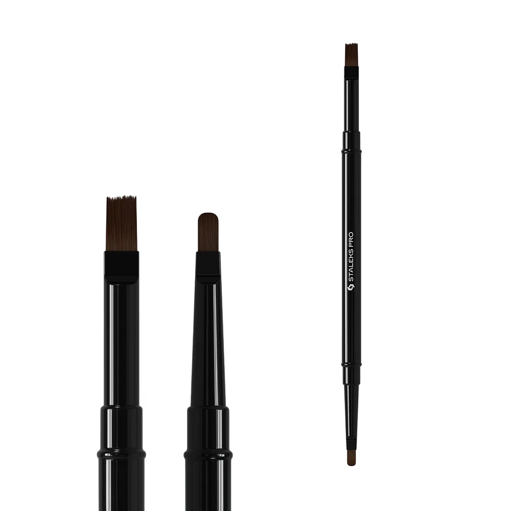 Нові двосторонні пензлі EXPERT - інноваційне рішення, за допомогою якого зручно поєднувати різні техніки нанесення матеріалу, прискорюючи процедуру і надаючи більше точності. Знімні робочі частини, міцний алюмінієвий корпус та нейлоновий ворс — довговічні й зручні. Інструмент з двома робочими сторонами влаштований за принципом 2 в 1. Вони легко ховаються всередину ручки, захищають щетинки від пошкоджень і забруднень. Майстер дістає потрібну частину і фіксує зовні, а після використання насадка перевертається і ховається назад. Конструкція виключає потребу в ковпачках, продовжує термін служби та спрощує зберігання. NBE-04/08 - все під контролем: Особливості продукту: Пензлик двосторонній EXPERT для гелю 7 мм / для гелю 10 мм (NBE-04/08) STALEKS PROПензлик двосторонній EXPERT для гелю 7 мм / для гелю 10 мм (NBE-04/08) STALEKS PRO