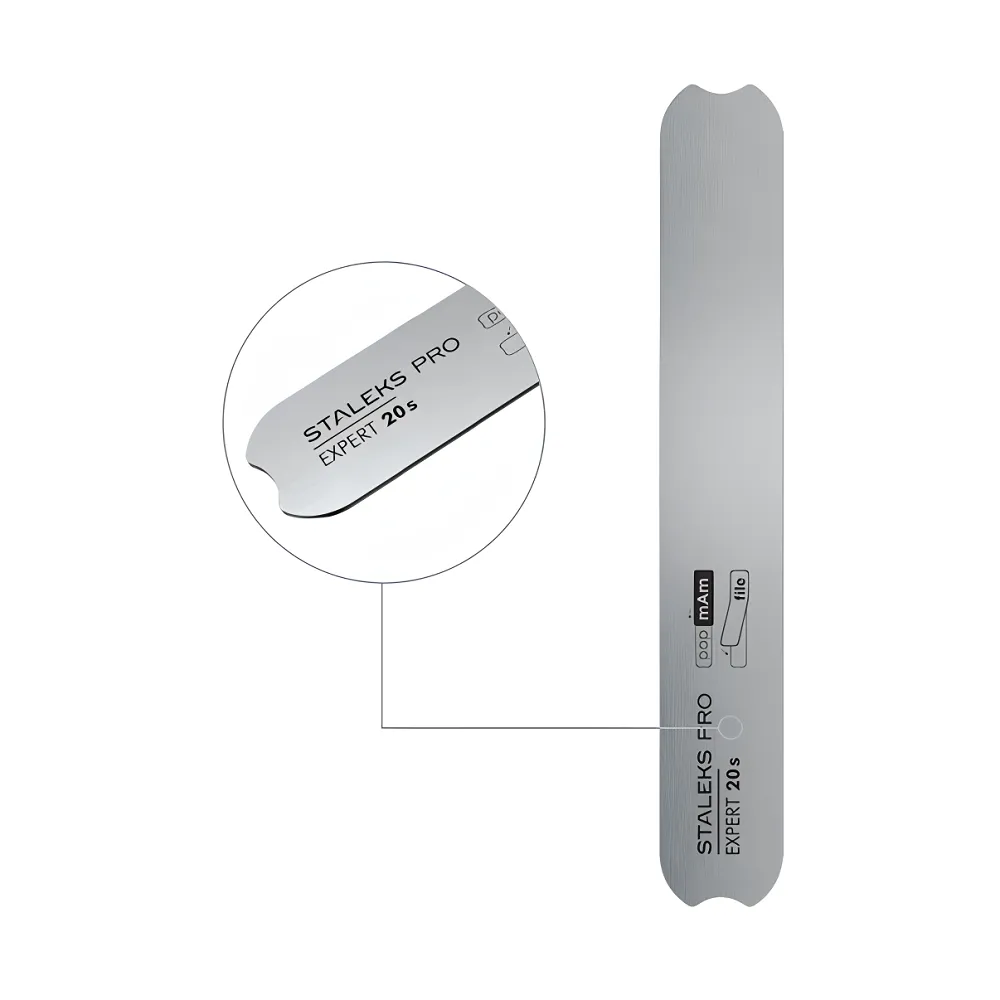 Пилка пряма (основа) EXPERT 20s (MBE-20s) — професійний інструмент майстрів манікюру для корекції довжини і форми нігтів, а також обробки шкіри навколо них. Основа пилки виготовлена з медичної нержавіючої сталі з хромованим покриттям — дуже міцна, довговічна та стійка до корозії. Гладенька поверхня відполірована, а класична пряма форма із закругленими кінцями (130 х 19 мм) компактна й зручна в роботі. Особливості продукту: Пилка-основа 130 мм металева пряма EXPERT 20 (MBE-20s) STALEKS PROПилка-основа 130 мм металева пряма EXPERT 20 (MBE-20s) STALEKS PRO