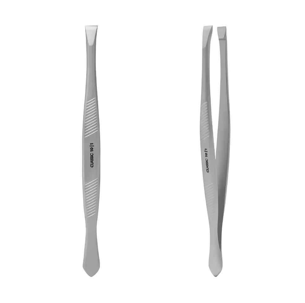 Пінцет TC-10/1 призначений для корекції брів у домашніх умовах. Довжина інструменту – 91 мм, має пряму форму ручок, широкі прямі кромки, ширина яких 5 мм. Класичний вигляд пінцету, завдяки його тонким кромкам легко виконується захоплення волосся будь-якої товщини і щільне змикання робочих площин не дає обламатися волоску. Особливості продукту: Пінцет для брів CLASSIC 10 TYPE 1 (TC-10/1) STALEKS PROПінцет для брів CLASSIC 10 TYPE 1 (TC-10/1) STALEKS PRO