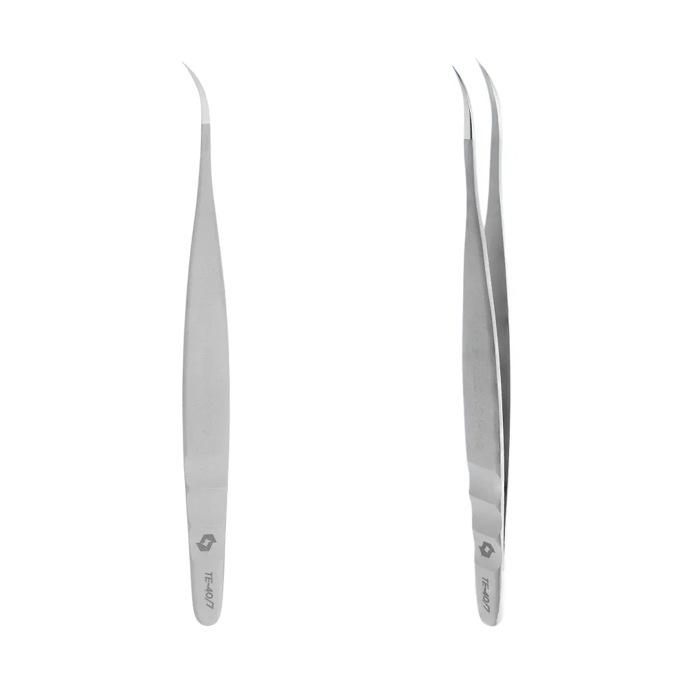Професійний пінцет TE-40/7, формою робочих кромок нагадує півмісяць, якнайкраще підійде для нарощування подвійного об`єму та ніжної класики. Широкі ручки забезпечують надійний хват та комфортне розміщення пінцету в руці. Інструмент має плавний хід, що запобігає пошкодженню та заламам штучних волосків, а також мінімізує появи втоми в руках майстра. Робочі частини пінцету ідеально відшліфовані та відполіровані, а це значно подовжує термін служби будь-якого beauty-інструменту та перешкоджає налипанню клею. Щільно і рівномірно змикаються вигнуті кромки інструменту дозволяють акуратно зняти штучний матеріал і з легкістю перенести його на повік, що моделюється. Ручне заточення гарантує помірну гостроту пінцету, що убереже від випадкового пошкодження вій та вік клієнток. Особливості продукту: Пінцет професійний для вій EXPERT 40 TYPE 7 (TE-40/7) STALEKS PROПінцет професійний для вій EXPERT 40 TYPE 7 (TE-40/7) STALEKS PRO