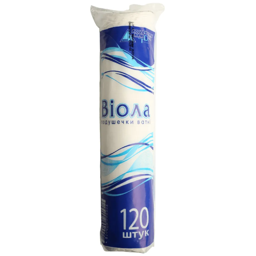 Ватні диски Віола це незамінна річ у догляді та мейкапі. За допомогою ватних дисків зручно видаляти макіяж і наносити косметичні та лікарські засоби. Вони впораються з нанесенням тоніка або видаленням лаку, допоможуть зняти туш та помаду. Особливості продукту: Кількість в упаковці: 120 штук.Подушечки ватні Віола