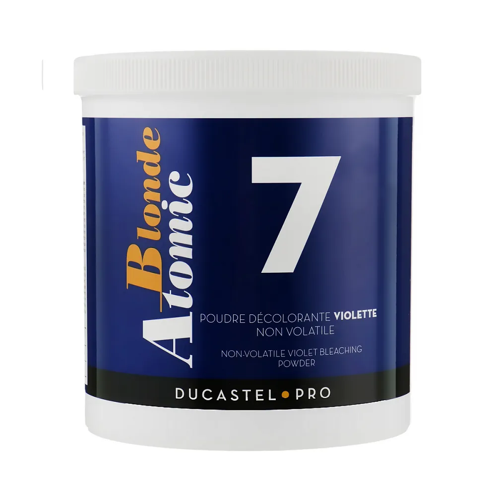 Суперефективний нелеткий фіолетовий відбілювач для освітлення волосся. Делікатно впливає структуру волосся, забезпечує швидкий результат та рівномірність кольору при освітленні. Завдяки своєму складу та формі зручна у використанні. Дозволяє комбінувати фарбування, освітлення та мелірування, заощаджуючи час майстра та час клієнта. Особливості продукту: Використовується для: Застосування: в неметалевому посуді змішати з окислювачем (залежно від очікуваного результату максимум 40 Vol). Пропорції змішування 1:1 або 1:2. Отриману суміш за допомогою пензлика нанесіть на підготовані пасма або на все волосся. Залишити на 20-50 хвилин. Протягом процедури іноді контролювати ступінь освітлення волосся. У момент отримання бажаного ефекту, змити теплою водою, ретельно вимити волосся шампунем і застосувати кондиціонер (маску).Пудра освітлювальна з охолоджувальним ефектом і запахом ментолу (7 levels), 500 г POUDRE DECOLORANTE VIOLETTE Blonde Atomic DUCASTEL PRO
