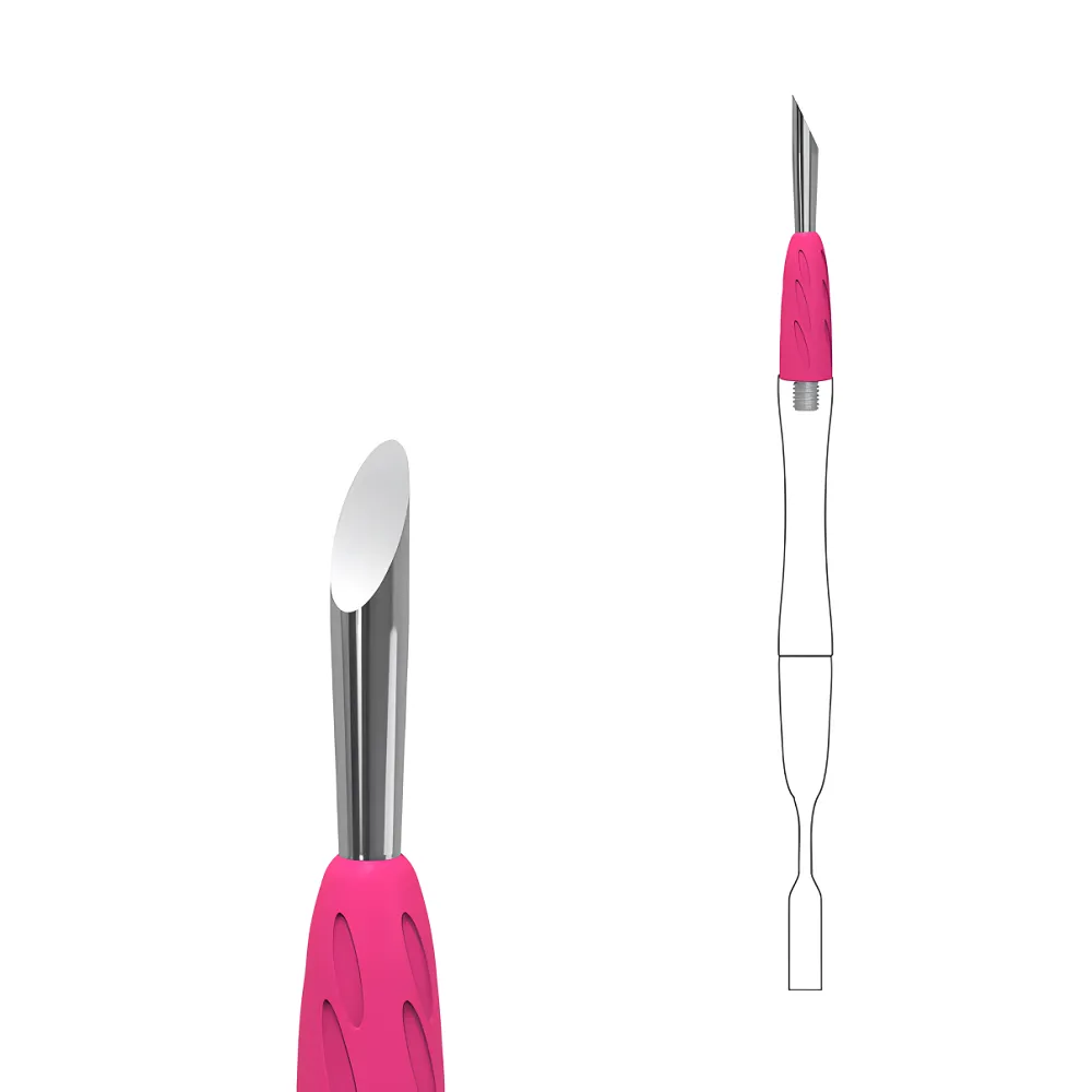 Пушер UNIQ 12 -прогресивний змінний модуль, який з’єднується з ручкою Combo UNIQ у результаті чого виходить повноцінний інструмент. Майстер може обирати на свій розсуд відповідно до потреб робочі частини модульної лопатки, отримуючи інструмент, який виконуватиме певні процедури. Пушер у формі металевої апельсинової палички використовується при піднятті та відсуванні міцно налиплої, грубої кутикули, очищенні вільного краю нігтя. Гострокінцева вершина гарантує бездоганну точність та швидкість виконання процедури. На звороті розташований різьбовий механізм з`єднання з ручкою. Силікон яскравого рожевого відтінку — гіпоалергенний і комфортний на дотик. Особливості продукту: Робоча частина лопатки Combo UNIQ 12 пушер скошений WPPQ-12 STALEKS PROРобоча частина лопатки Combo UNIQ 12 пушер скошений WPPQ-12 STALEKS PRO