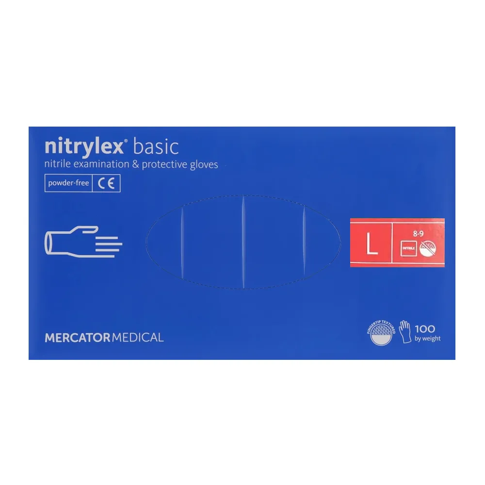 Рукавички нітрилові, нестерильні, неприпудрені, розмір L (100 шт), колір: БЛАКИТНИЙ Nitrylex Basic/Classic Mercator Medical