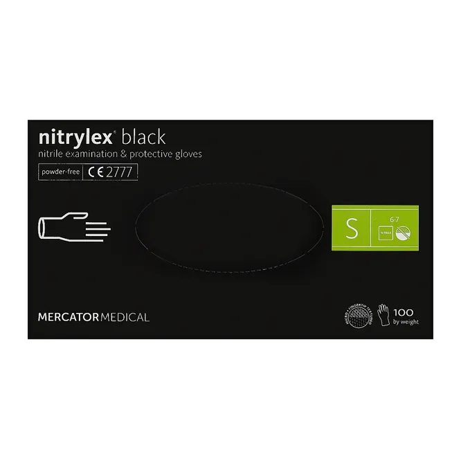 Відгуки Рукавички нітрилові, нестерильні, неприпудрені, розмір S (100 шт), колір: ЧОРНИЙ Nitrylex Black Mercator Medical