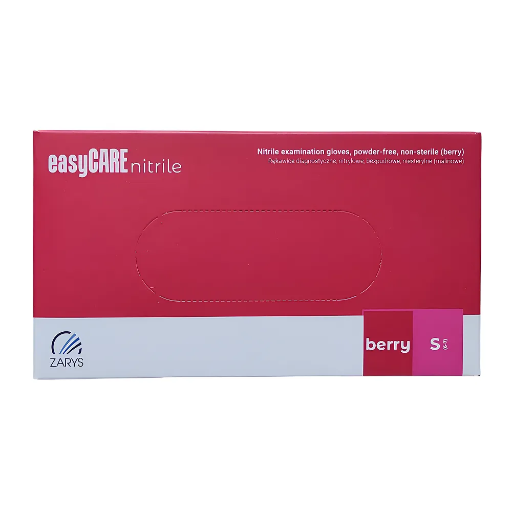 easyCARE nitrile ZARYS – це нітрилові рукавички, виготовлені з синтетичного акрилонітрилбутадієнового каучуку (NBR). Вони є альтернативою латексним рукавичкам. Рукавички не містять латексних білків. Особливості продукту: Рукавички нітрилові, нестерильні, неприпудрені, розмір S (100 шт), колір: МАЛИНОВИЙ easyCARE nitrile berry ZARYS Розміри медичних рукавичок: Рукавички нітрилові, нестерильні, неприпудрені, розмір S (100 шт), колір: МАЛИНОВИЙ easyCARE nitrile berry ZARYS Щільність/вага: 4,0 г. Спосіб застосування: Рукавички нітрилові, нестерильні, неприпудрені, розмір S (100 шт), колір: МАЛИНОВИЙ easyCARE nitrile berry ZARYS Кількість в упаковці: 100 штук (50 пар).Рукавички нітрилові, нестерильні, неприпудрені easyCARE nitrile berry ZARYS