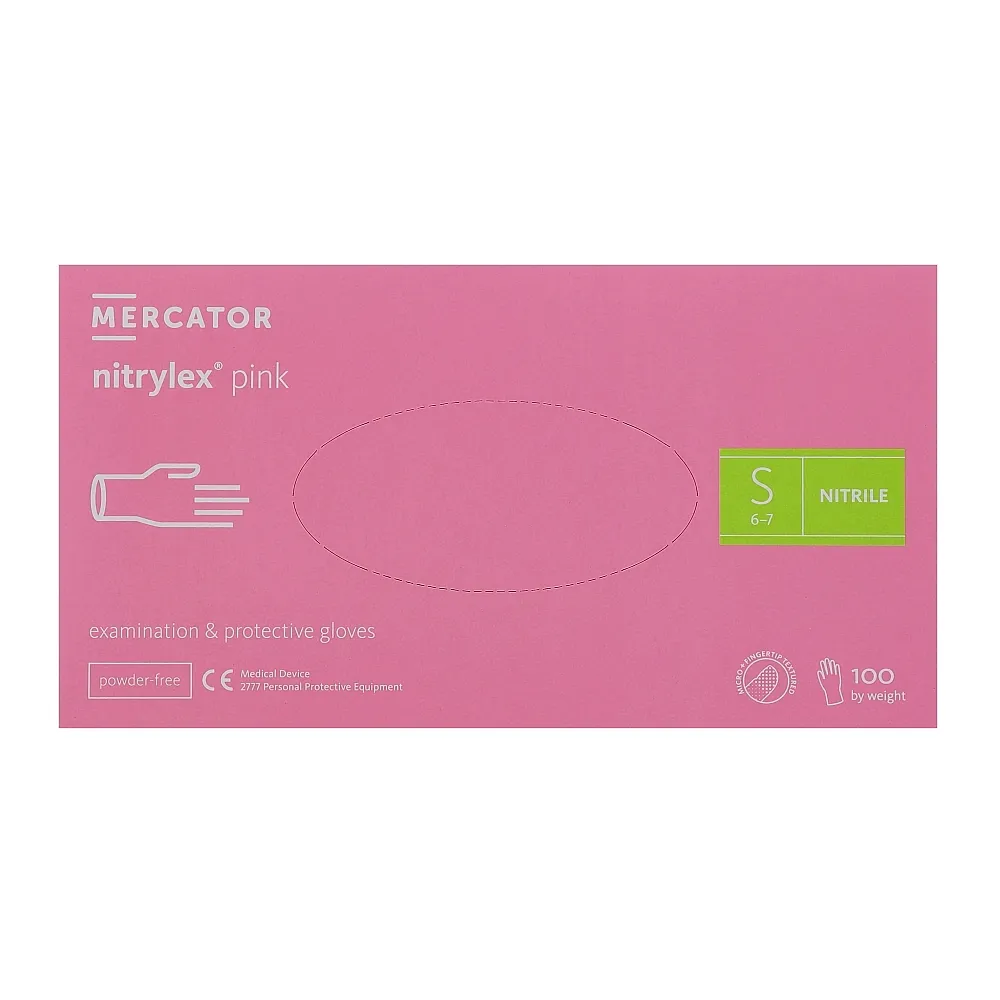 Рукавички нітрилові, нестерильні, неприпудрені, розмір S (100 шт), колір: РОЖЕВИЙ Nitrylex Pink Mercator Medical