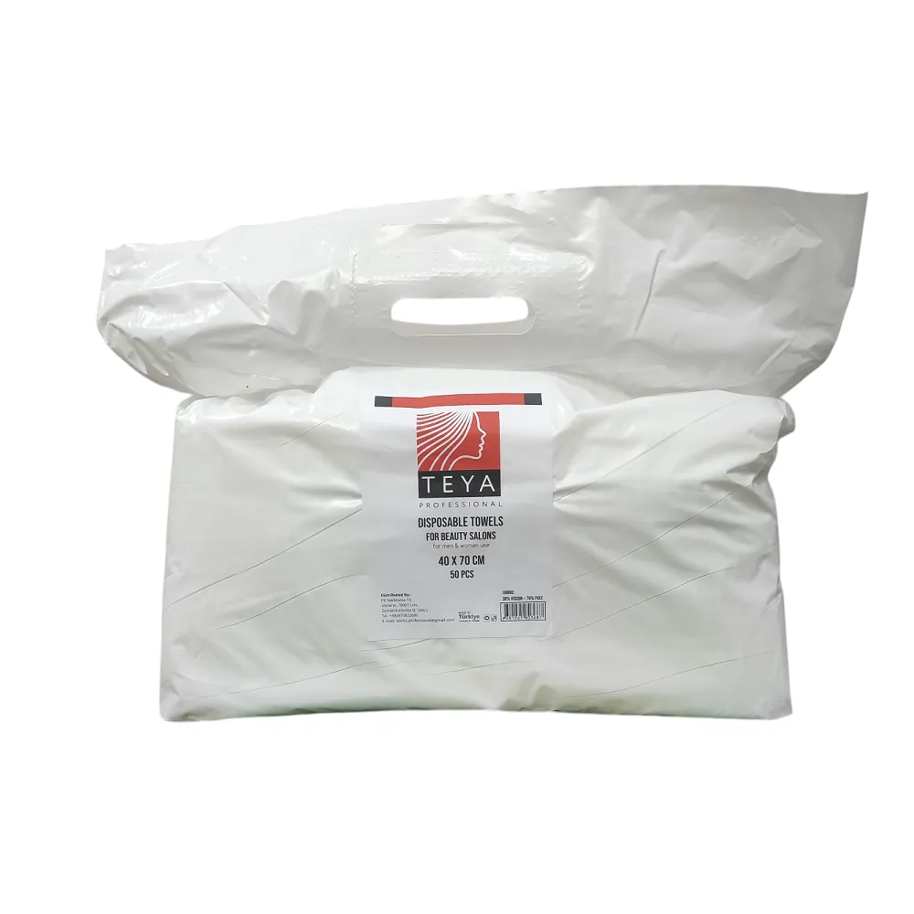Ці рушники виготовлені з нетканого матеріалу спанбонд з додаванням 30% віскози. Спанбонд — це нетканий поліпропіленовий мікропористий паропроникний матеріал. Віскоза гіпоалергенна та добре вбирає вологу - має високу всмоктувальну здатність, забезпечує м`якість дотику. Рекомендується для застосування в медичних установах, для різних очищувальних процедур, накладення косметичних масок і т. д., особистої гігієни клієнтів. За своїми властивостями вони близькі до бавовняним рушникам і є їх відмінною альтернативою. Не залишають ворсу. Особливості продукту: Застосування: медицина, косметологія, SPA-процедури, масажні кабінети, лазні і сауни, солярії, салони краси і перукарні, навчальні центри краси, побутова сфера, готельні комплекси. Кількість в упаковці: пачка містить 50 шт.Рушники 40*70 см зі спанбонду та 30% віскози (В ПАЧЦІ, ТИСНЕНІ, білий колір) TEYA Professiona