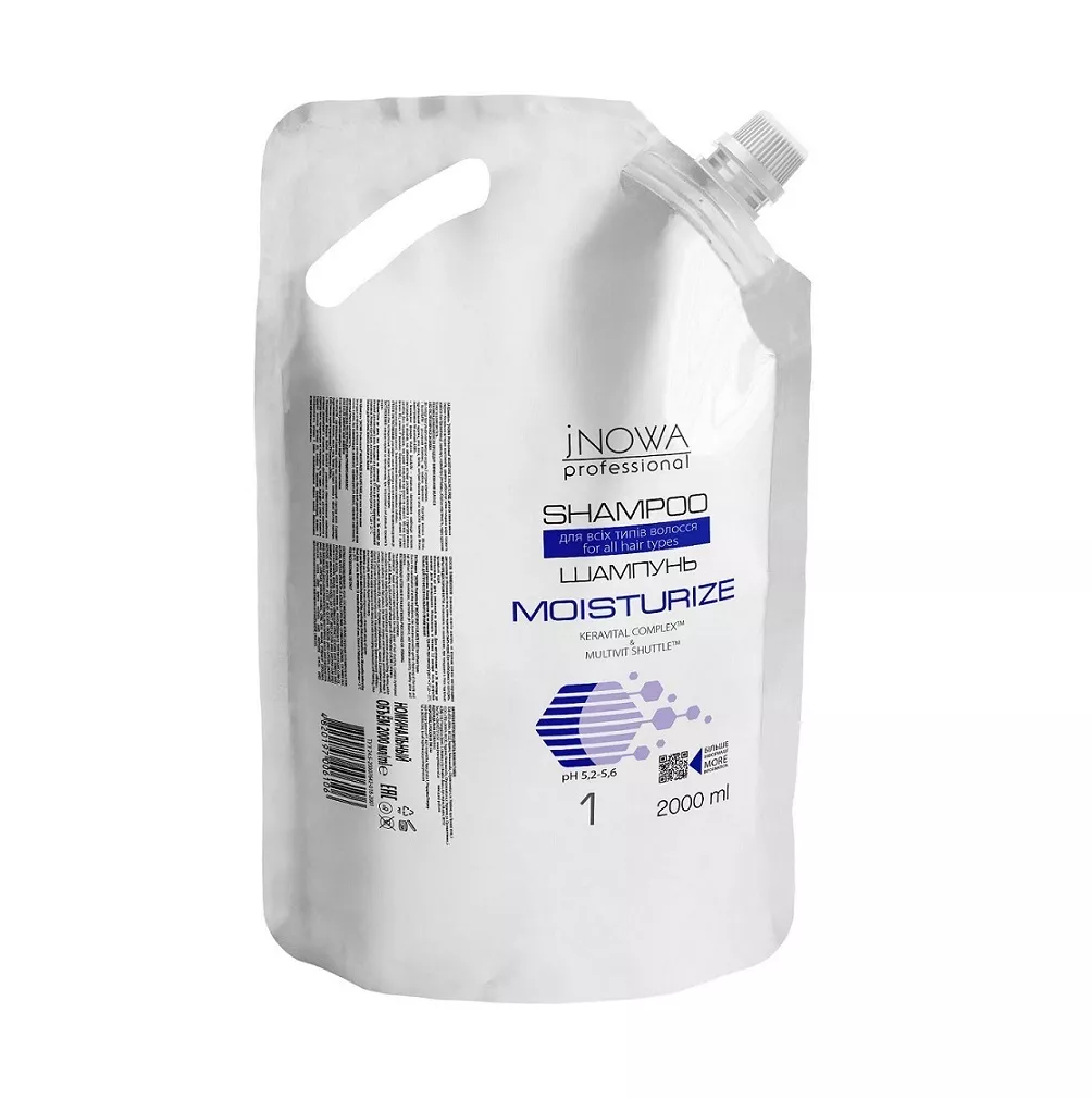 MOISTURIZE JNOWA Professional - серія професійної продукції для зволоження волосся Призначена для застосовання після процедур кератинового випрямлення волосся, ботоксу та хімічної завивки. ШАМПУНЬ БЕЗ СУЛЬФАТІВ ДЛЯ ЗВОЛОЖЕННЯ ВОЛОССЯ MOISTURIZE JNOWA Professional KeraVital COMPLEX – інноваційний комплекс, спеціально розроблений Інститутом Здорового Волосся ACME MultivitShutle – інноваційна збалансована система доставки комбінації з вітамінів та зволожувачів на стрижень волосини. Застосування: Рівномірно нанести шампунь на вологе волосся масажними рухами до утворення піни, потім ретельно змити водою.