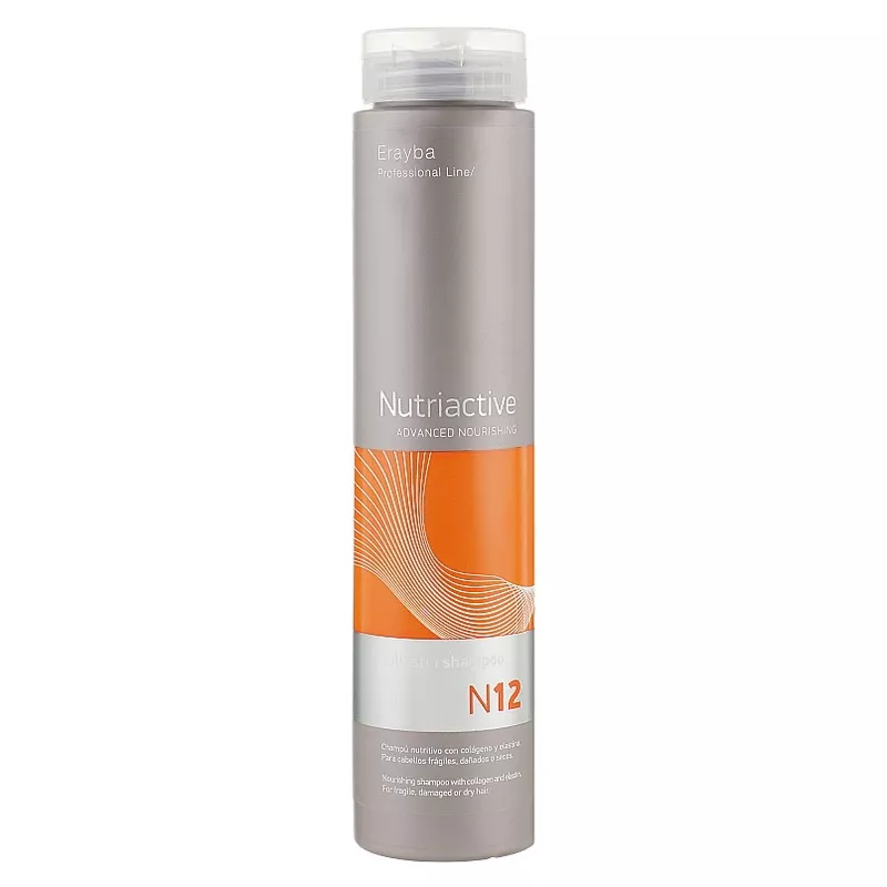 Шампунь без сульфатів з колагеном та еластином Erayba N12 Collastin Shampoo – комплексний засіб, який забезпечує дбайливе та ефективне очищення та відновлення волосся та шкіри голови. Рекомендується для щоденного догляду за сухим, тонким, пошкодженим волоссям. Особливості продукту: Застосування: нанести на вологе волосся, спінити масажними рухами, ретельно змити водою. Шампунь без сульфатів для живлення і відновлення волосся з колагеном та еластином Collastin N12 NutriActive ERAYBA
