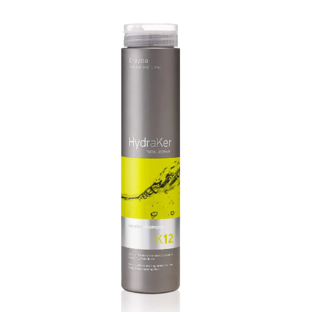Професійний шампунь з кератином Erayba K12 HydraKer призначений для щоденного догляду за ослабленим, фарбованим, пошкодженим або знебарвленим волоссям.