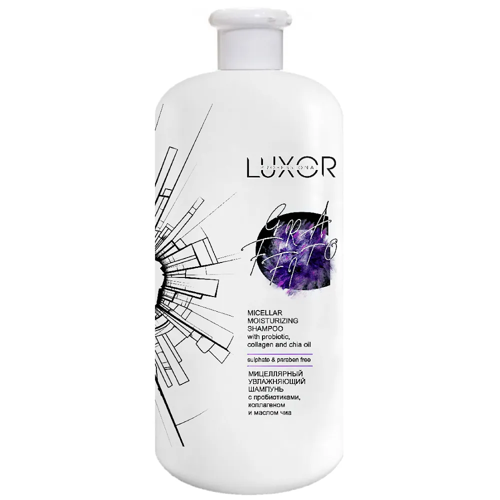 Делікатний міцелярний шампунь Micellar Moisturizing Shampoo розроблений для глибокого очищення шкіри голови та волосся. Міцелли, що входять до складу шампуню, глибоко проникають у пори шкіри і структуру волосся, забезпечуючи оптимальну чистоту і тривалий догляд. Зміст пробіотиків усуває патогенну мікрофлору та лупу, знімає роздратування, сприяє зміцненню волосяної цибулини та росту волосся. Колаген на клітинному рівні реставрує пошкоджену структуру волосся, надаючи їм гладкість та еластичність. Олія чі інтенсивно зволожує, надає діамантовий блиск і шовковистість. Особливості продукту: Активні компоненти: пробіотики, колаген, олія чіа. Застосування: невелику кількість шампуню нанести на вологе волосся, розподілити по довжині, спінити масажними рухами протягом 2-3 хвилин. Змити великою кількістю води. За необхідності використовувати повторно.Шампунь безсульфатний, міцеллярний зволожувальний з пробіотиками, колагеном і маслом чіа Micellar Moisturizing Shampoo Sulfate & Paraben Free LUXOR Professional