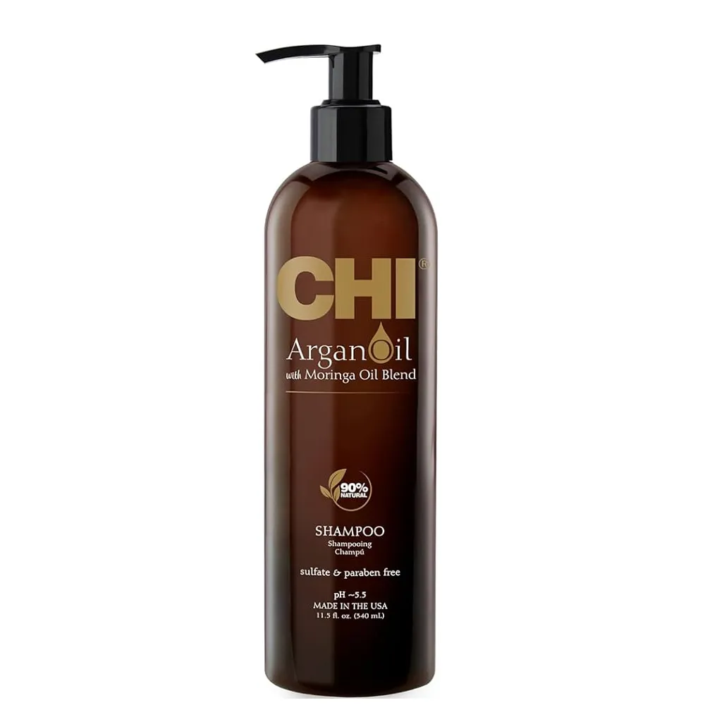 Шампунь для волосся SHAMPOO Argan Oil CHI має в собі унікальне поєднання екзотичних олій, які м`яко очищують і омолоджують сухе, пошкоджене волосся, відновлюючи вологу. Необхідні вітаміни, антиоксиданти і зміцнюючі протеїни роблять волосся здоровим і блискучим. Argan Oil CHI – це розкішна система догляду за волоссям, що складається з 4 компонентів. Містить унікальну суміш арганової олії, олії морінги та керамічної сполуки CHI природного походження для омолодження та зволоження тьмяного, кучерявого та пошкодженого волосся. Особливості продукту: Застосування: нанести на вологе волосся невелику кількість шампуню, помасажувати до появи піни, залишити на кілька хвилин, змити великою кількістю води. У разі необхідності повторити процедуру.Шампунь безсульфатний, відновлювальний з аргановою олією (pH 5,5) SHAMPOO Argan Oil CHI