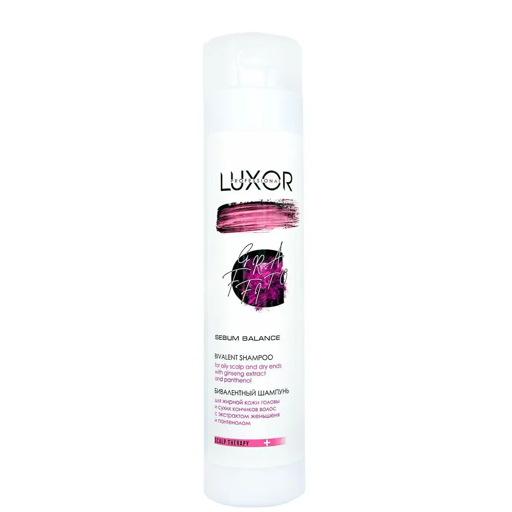 Делікатний шампунь Bivalent Shampoo SEBUM BALANCE м`яко очищує жирну шкіру голови та зволожує сухі кінчики волосся. Екстракт женьшеню, що входить до складу шампуню, балансує вироблення себуму, нормалізує гідробаланс і стимулює імунітет шкіри голови. Пантенол та катіонні полімери глибоко зволожують та відновлюють пошкоджені, сухі ділянки волосся. Особливості продукту: Активні компоненти: екстракт женьшеню, пантенол, катіонні полімери. Застосування: невелику кількість шампуню нанести на вологе волосся, розподілити по довжині, спінити масажними рухами, змити великою кількістю води. За необхідності використовувати повторно.Шампунь бівалентний для жирної шкіри голови і сухих кінчиків Bivalent Shampoo SEBUM BALANCE Scalp Therapy LUXOR Professional