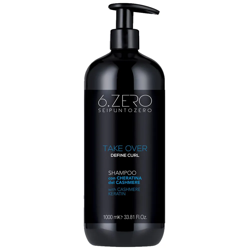 Шампунь DEFINE CURL для догляду за хвилястим і кучерявим волоссям на основі кашемірового кератину. Делікатно очищає, пом`якшує волосся, надає унікальної пружності і еластичності, допомагає контролювати неслухняні локони, зменшує статику, прибирає неестетичний ефект пухнастого волосся. Ущільнювальний комплекс, що входить до складу утворює на волоссі плівку, прибирає статику, помітно збільшуючи об’єм і кондиціонуючи волосся. Активні компоненти: Особливості продукту:Шампунь для хвилястого і кучерявого волосся з кератином Shampoo DEFINE CURL Take Over 6.ZERO SEIPUNTOZERO