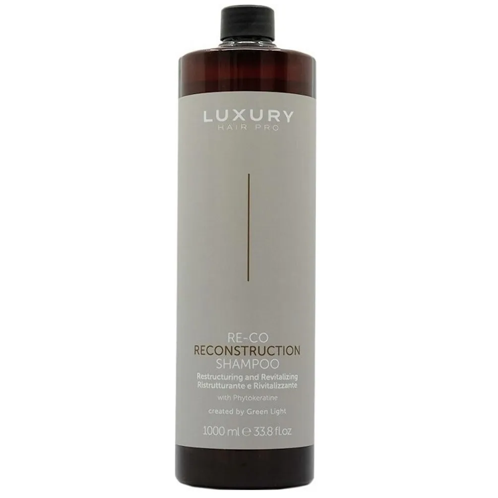Шампунь Green Light Re-Co Luxure Shampoo - це м`який засіб для очищення, спеціально створений для тонкого, ламкого та зневодненого волосся, яке потребує глибокої реконструкції та відновлення. Його формула базується на фітокератині, що в комплексі з амінокислотами (аргінін, пролін), маслом аргани та цінними білками допомагає змінцнити структуру волосся та повернути йому здоровий вигляд. Шампунь наповнює волосся життєвою силою, робить його м`якішим, блискучим і більш густим. Активні компоненти шаппуню працюють як на поверхні, так і в глибших шарах волосяного стрижня, відновлюють пошкодження, зменшують сухість та ламкість. Особливості продукту: Шампунь для реконструкції волосся з фітокератином Reconstruction Shampoo RE-CO LUXURY GREEN LIGHT Застосування: Шампунь для реконструкції волосся з фітокератином Reconstruction Shampoo RE-CO LUXURY GREEN LIGHT Нанести на вологе волосся, ніжно помасажувати шкіру голови протягом 2-3 хвилин. Ретельно змити водою.Шампунь для реконструкції волосся з фітокератином Reconstruction Shampoo RE-CO LUXURY GREEN LIGHT