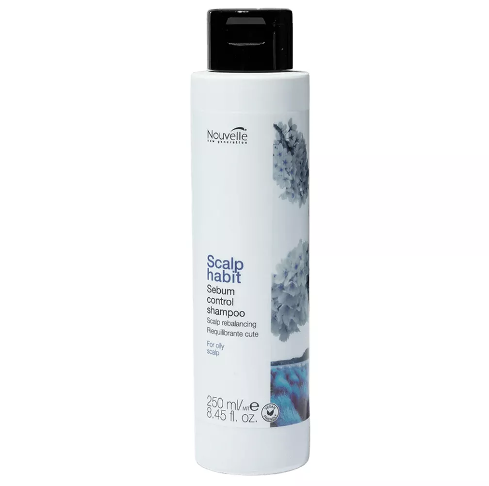 Scalp Habit Sebum Control Shampoo - шампунь проти лупи об`ємом спеціально розроблений для жирної шкіри голови та густого волосся. Його унікальна формула ефективно очищує шкіру голови, видаляючи надлишки жиру та регулюючи роботу сальних залоз. Шампунь м`яко, але ретельно очищує, не викликаючи подразнення та не пересушуючи шкіру. Завдяки цьому засобу волосся довше залишається чистим, легким і блискучим. Застосування: нанесіть шампунь на вологе волосся та шкіру голови, акуратно помасажуйте, потім ретельно змийте.Шампунь для жирної шкіри голови нормалізуючий Sebum Control Shampoo Scalp Habit Nouvelle