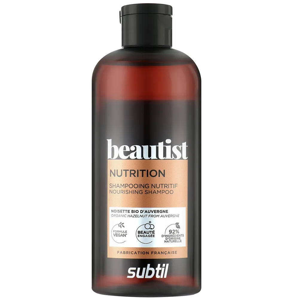 Цей безсульфатний шампунь Nourishing Shampoo є рятівником сухого та дуже сухого волосся, створює густу повітряну піну для ніжного і приємного очищення волосся. Засіб має інтенсивну кондиціонуючу дію і є ідеальним для відновлення, живлення волосся і забезпечує легке розплутування пасм. До складу входить 18 основних інгредієнтів для забезпечення ефективності та органолептики. Має ароматні ноти: зелений гурман. Особливості продукту: Активні компоненти: Застосування: нанести на вологе волосся, ніжно помасажуйте, утворюючи піну, ретельно промийте.Шампунь для живлення сухого та дуже сухого волосся Nourishing Shampoo NUTRITION Beautist Subtil