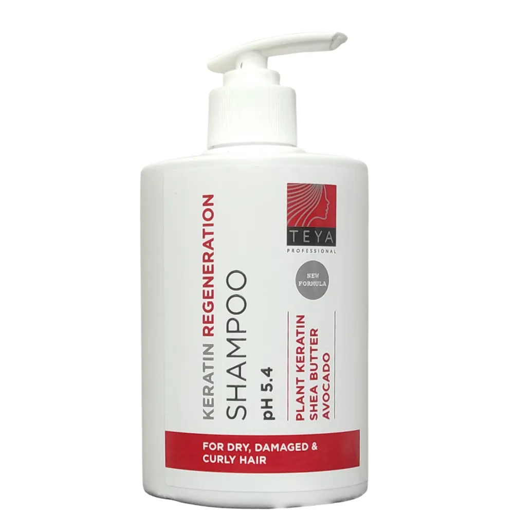 Шампунь KERATIN REGENERATION - це спеціалізована косметика із оновленою формулою потужними відновлюювальними та зволожувальними властивостями. Вдосконалена формула підходить для всіх типів волосся. Особливо ідеально підходить для сухого, кучерявого або пошкодженого волосся. Завдяки унікальній формулі шампунь не лише дбайливо очищає, а й глибоко відновлює волосся по всій довжині. Активні компоненти: рослинний кератин, олія ши та авокадо. Особливості продукту: Шампунь кератинова регенерація KERATIN REGENERATION Shampoo TEYA Professional Застосування: нанесіть шампунь на вологе волосся і помасажуйте до утворення м`якої піни, змийте великою кількістю теплої води.Шампунь кератинова регенерація (pH 5.4) для відновлення пошкодженого волосся (з дозатором) KERATIN REGENERATION Shampoo TEYA Professional