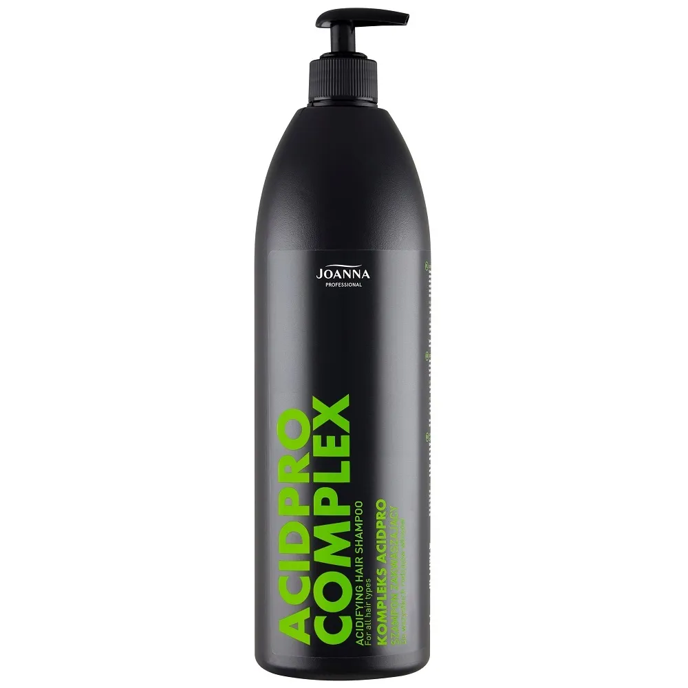 Професійний кислотний шампунь Joanna Professional спеціально створений для догляду за волоссям після лужних салонних процедур - фарбування, освітлення та хімічної завивки. Формула з рівнем pH 3.8 допомагає швидко відновити природний кислотно-лужний баланс волосся, повертає йому здоровий вигляд, гладкість і блиск. Завдяки комплексу AcidPro шампунь закриває кутикулу волосся, стабілізує колір усередині волосяного волокна та полегшує розчісування. Ідеально підходить для всіх типів волосся, особливо після професійних перукарських процедур. Особливості продукту: Шампунь кислотний (pH 3.8) для стабілізування після салонних процедур, 1000 мл Shampoo ACIDPRO COMPLEX Joanna Застосування: Шампунь кислотний (pH 3.8) для стабілізування після салонних процедур, 1000 мл Shampoo ACIDPRO COMPLEX Joanna Невелику кількість шампуню нанести на мокре волосся, ніжно масажувати до появи піни, а потім ретельно змити водою.Шампунь кислотний (pH 3.8) для стабілізування після салонних процедур Shampoo ACIDPRO COMPLEX Joanna