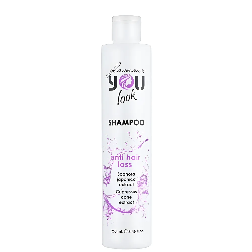 Шампунь Anti Hair Loss SHAMPOO має м`яку формулу, яка делікатно промиває шкіру голови, видаляє бактерії і грибки, лупу, себум і залишки стайлінгових засобів. Екстракт японської софори, який входить до складу, сприяє зменшенню чутливості і зниженню свербіння та дискомфорту. Пілінг-часточки прискорюють мікроциркуляцію, забезпечують приплив вітамінів і мікроелементів, необхідних для росту і розвитку фолікулів. Витяжка з ягід кипариса інтенсивно живить і зволожує кожну клітинку, відновлює пошкоджені ділянки кортексу і гарантує блиск, шовковистість і слухняність волосся. Активні компоненти: Шампунь проти випадіння волосся з японською софорою, 250 мл Anti Hair Loss SHAMPOO Glamour You look Professional Особливості продукту: Шампунь проти випадіння волосся з японською софорою, 250 мл Anti Hair Loss SHAMPOO Glamour You look Professional Застосування: Шампунь проти випадіння волосся з японською софорою, 250 мл Anti Hair Loss SHAMPOO Glamour You look Professional Нанести на вологе волосся, витримати 2 хвилини, потім змити великою кількістю води.Шампунь проти випадіння волосся з японською софорою Anti Hair Loss SHAMPOO Glamour You look Professional