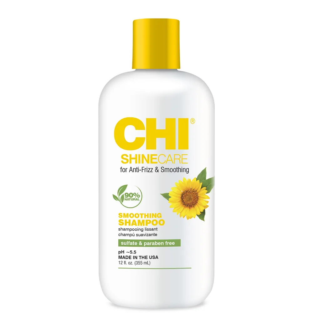 Розгладжувальний шампунь для неслухняного волосся Smoothing Shampoo містить комплекс шовку, соняшникову олію і алое віра, які забезпечують максимальне зволоження і розгладжують неслухняне, сплутане, неконтрольоване волосся. Протеїни шовку проникають в структуру, надаючи волоссю живий блиск. Не містить сульфатів і парабенів. Активні компоненти: Особливості продукту: Застосування: нанести на мокре волосся невелику кількість шампуню, помасажувати голову до появи піни і змити великою кількістю води. За потреби повторити. Рекомендується застосовувати з Smoothing Conditioner ShineCare CHI.Шампунь розгладжувальний для неслухняного волосся безсульфатний Smoothing Shampoo ShineCare CHI