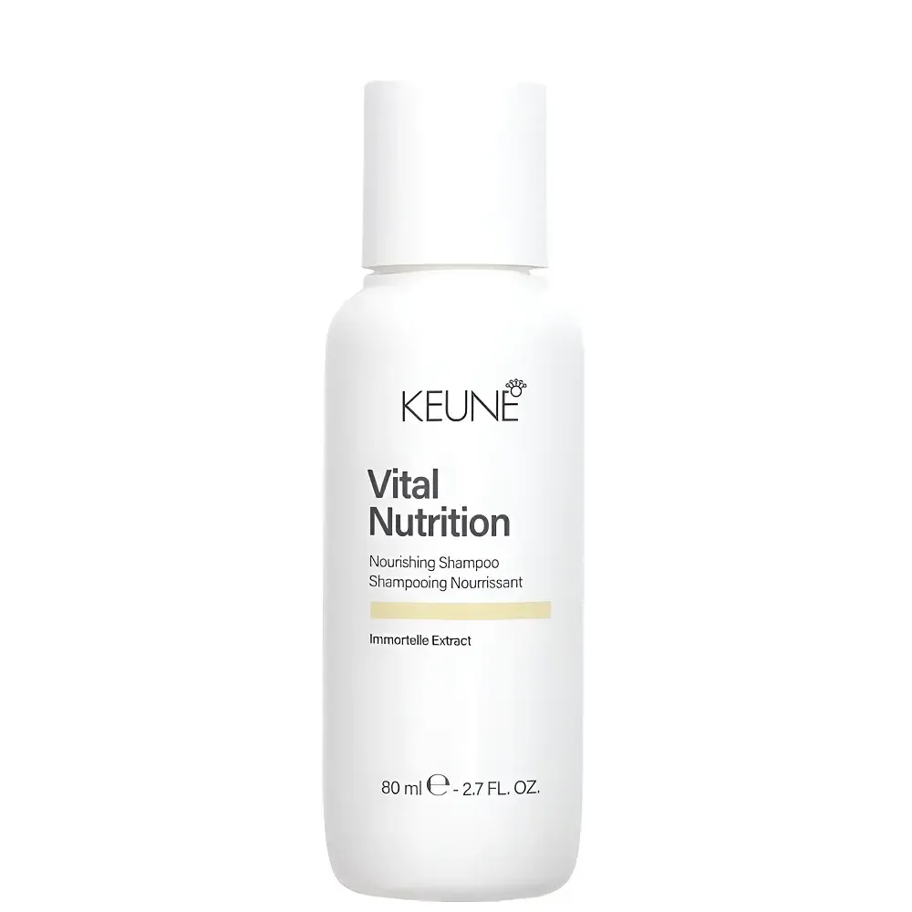Keune Care Vital Nutrition Shampoo - забезпечує делікатне очищення та інтенсивне живлення для сухого й пошкодженого волосся. Спеціально розроблена формула допомагає зміцнити волосся, зберегти оптимальний рівень зволоження та надати природного сяйва. Зволожувальні інгредієнти легко розплутують, відновлюють м’якість, блиск та слухняність, залишають волосся помітно здоровішим та приємно м’яким на дотик. Завдяки легкій формулі підходить для щоденного використання. Активні компоненти: Шампунь відновлювальний для пошкодженого волосся "Основне живлення", 80 мл Shampoo Vital Nutrition Care KEUNE Особливості продукту: Шампунь відновлювальний для пошкодженого волосся "Основне живлення", 80 мл Shampoo Vital Nutrition Care KEUNE Застосування: Шампунь відновлювальний для пошкодженого волосся "Основне живлення", 80 мл Shampoo Vital Nutrition Care KEUNE Нанести на вологе волосся, спінити масажними рухами, ретельно змити водою. За потреби повторити.Шампунь відновлювальний для пошкодженого волосся "Основне живлення" Shampoo Vital Nutrition Care KEUNE