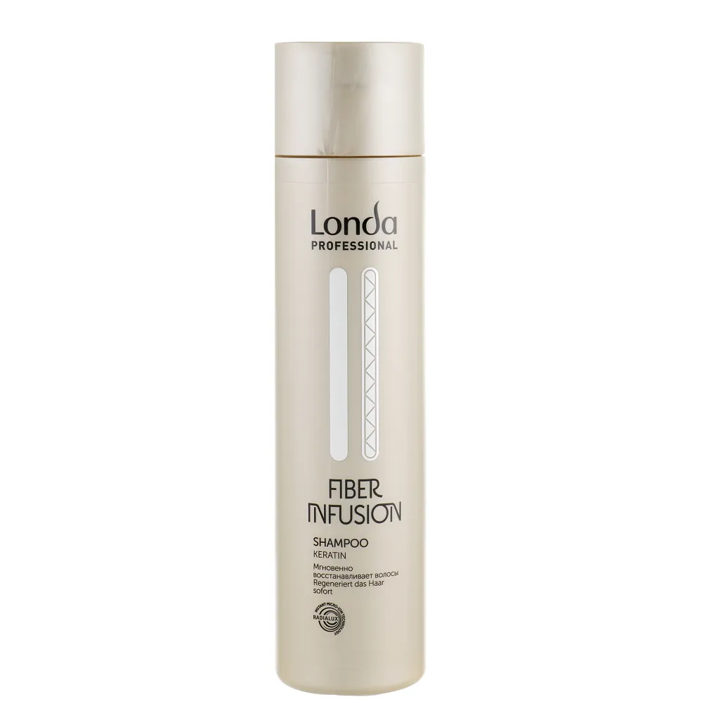 Шампунь Shampoo FIBER INFUSION миттєво відновлює волосся, делікатно очищає і ідеально готує волосся до глибокого відновлення з використанням засобів лінії Fiber Infusion. Забезпечує до 97% менше ламкості волосся. Підходить для будь-якого типу волосся. Особливості продукту: Шампунь для реконструкції пошкодженного волосся з кератином, 250 мл Shampoo FIBER INFUSION Londa Professional Застосування: Шампунь для реконструкції пошкодженного волосся з кератином, 250 мл Shampoo FIBER INFUSION Londa Professional Нанести на вологе волосся масажними рухами, змити водою.Шампунь для реконструкції пошкодженного волосся з кератином Shampoo FIBER INFUSION Londa Professional