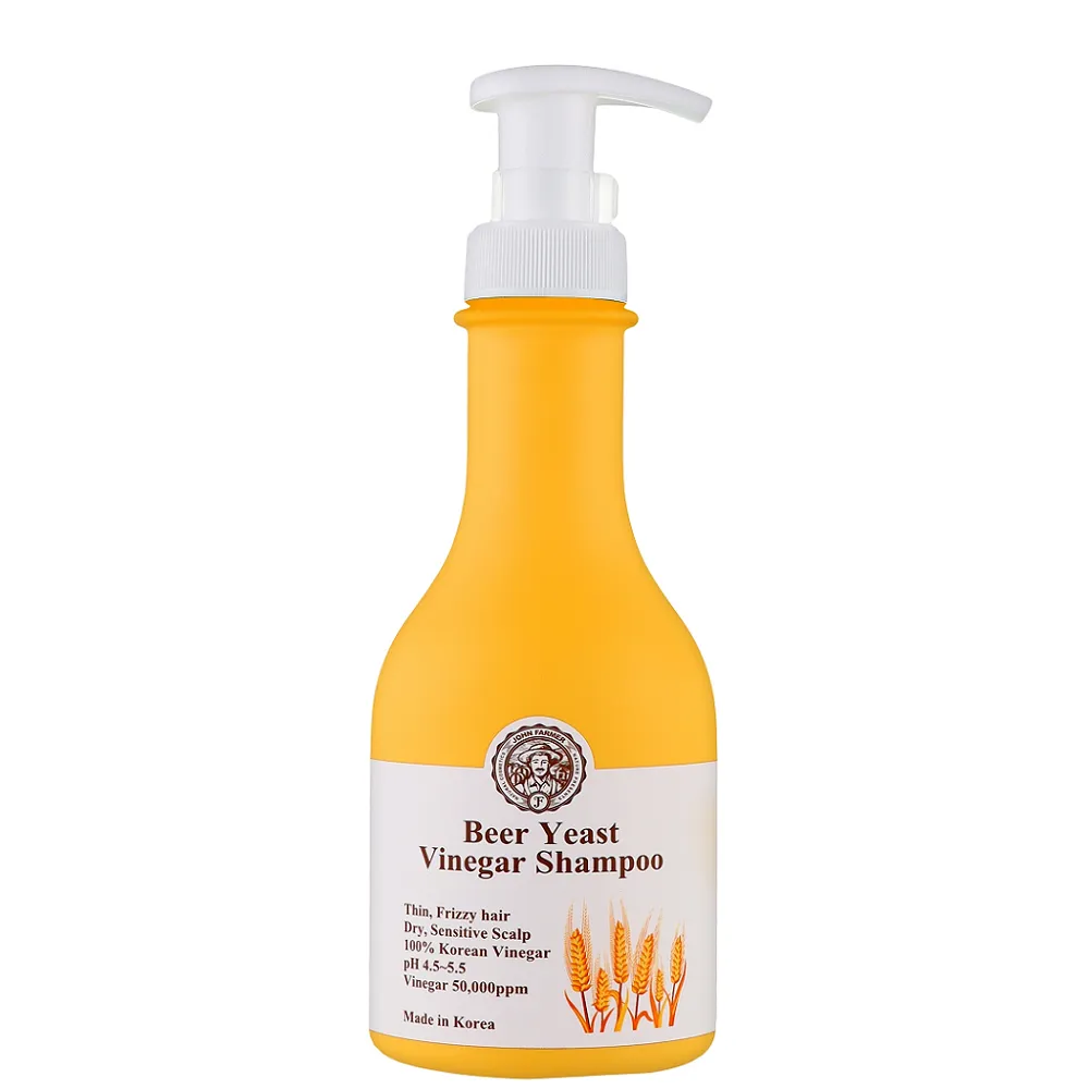 Шампунь проти випадіння волосся Beer Yeast Vinegar Shampoo на основі пивних дріжджів і 100% корейського коричневого рисового оцту глибоко очищує, живить і зволожує. Пивні дріжджі є багатим джерелом біотину та забезпечують достатнє живлення шкіри голови, щоб підтримувати її здоровою. Крім того, він сприяє зміцненню волосся, збільшенню їх обсягу, покращенню росту та збагаченню вітамінами, мінералами та іншими поживними речовинами. Оцет з коричневого рису багатий на білки та харчові волокна, забезпечує зволоження сухого волосся, усуває накопичені мертві клітини шкіри голови, діє як природний дезінфікуючий засіб, антиоксидант і хороший засіб проти старіння. Він також містить саліцилову кислоту, яка видаляє омертвілі клітини шкіри, ніацинамід, який живить, і пантенол, який забезпечує зволожуючу та заспокійливу дію. Ідеально підходить для сухої шкіри голови та тонкого або кучерявого волосся. Особливості продукту: Застосування: нанести шампунь на мокре волосся, помасажувати шкіру голови та розприділити по всій довжині волосся, змити теплою водою. Для кращого результату після миття волосся рекомендовано викоритовувати Beer Yeast Vinegar Treatment JOHN FARMER.Шампунь зміцнювальний з пивними дріжджами та оцтом для тонкого та сухого волосся Beer Yeast Vinegar Shampoo JOHN FARMER