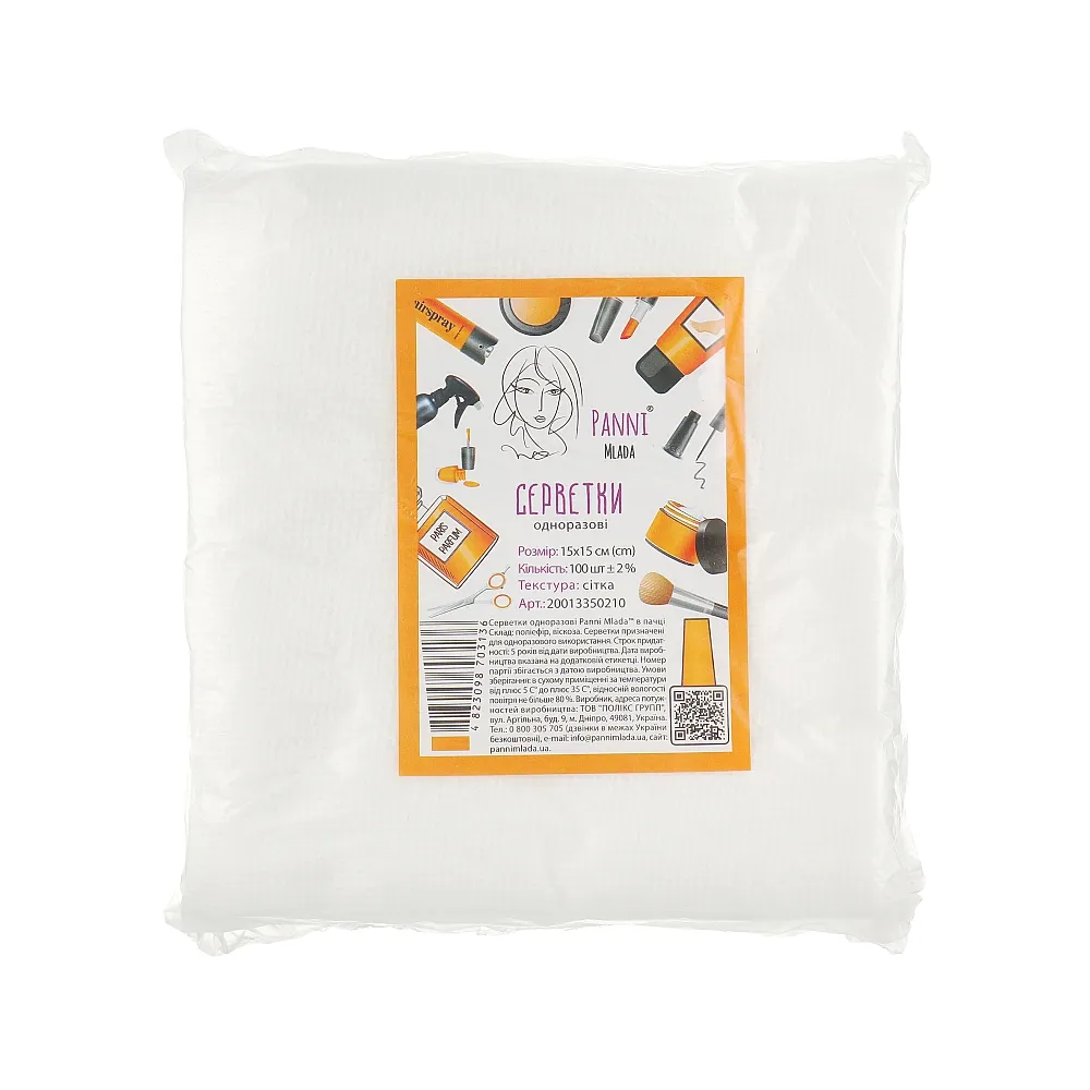 Відгуки Серветки 15*15 см зі спанлейсу 40 г/м2 (В ПАЧЦІ, СІТКА, білий колір), 100 шт Panni Mlada