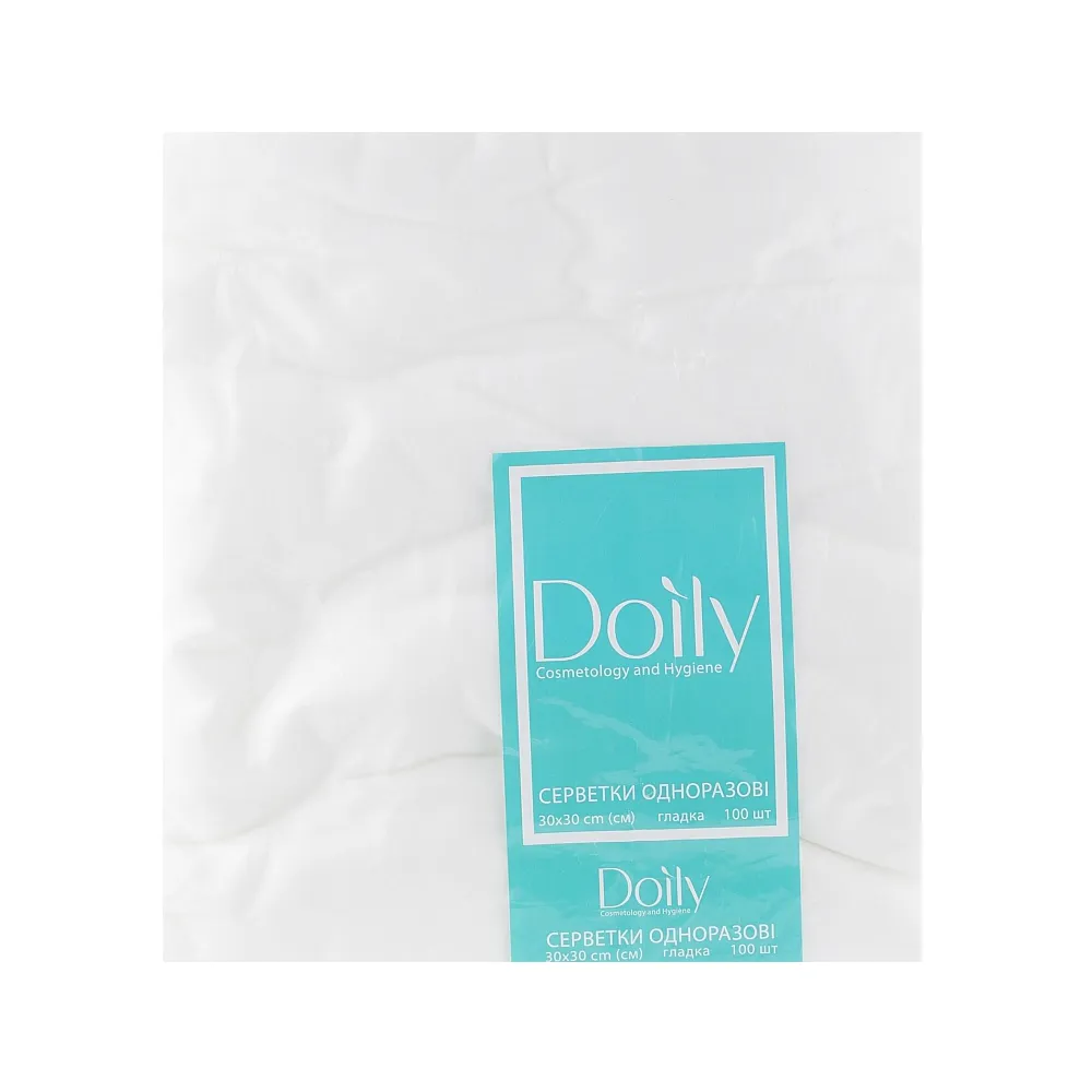 Серветки 30*20 см зі спанлейсу 40 г/м2 (В ПАЧЦІ, ГЛАДКІ, білий колір), 100 шт Doily