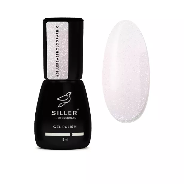 Siller Holographic Base (блідо-рожевий голографічний з блискітками) — камуфлююча база. Підходить як для довгих нігтів, так і для коротких та не дає усадки матеріалу. Має прекрасний голографічний ефект з блискітками. Для любителів всього блискучого – ідеально! Покриття має середню щільності, що зручно в роботі, досить 1-2 шари для високоякісного результату. Базу можна використовувати як самостійне покриття.