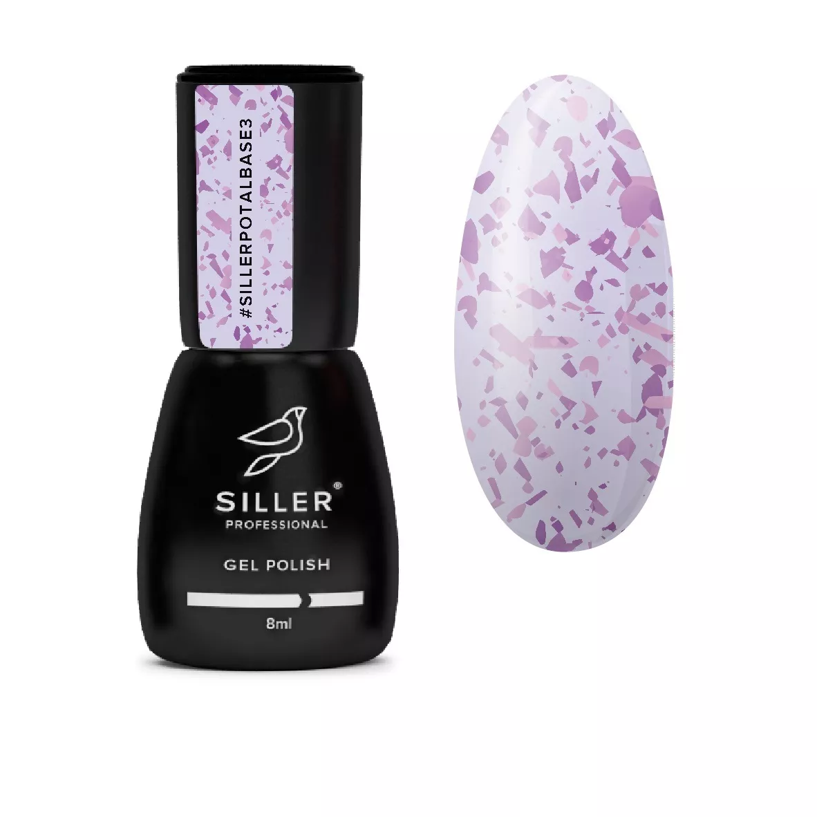 Base Potal від Siller Professional - це колекція ніжних камуфлюючих баз з додаванням яскравих мерехтливих шматочків поталі, які точно не залишать байдужими як майстра, так і клієнта. Завдяки середній щільності, база легко лягає на нігтик і самовирівнюється по нігтьовій пластині, що робить її дуже зручною у використанні. *Важливо! Під Base Potal ми наносимо Rubber base на натуральний ніготь, полімеризуючи 60 сек. Далі можете покривати базу як кольоровим гель-лаком, так і просто топом для завершення манікюру. Siller Potal Base №3 фіолетова з фіолетовою поталью.