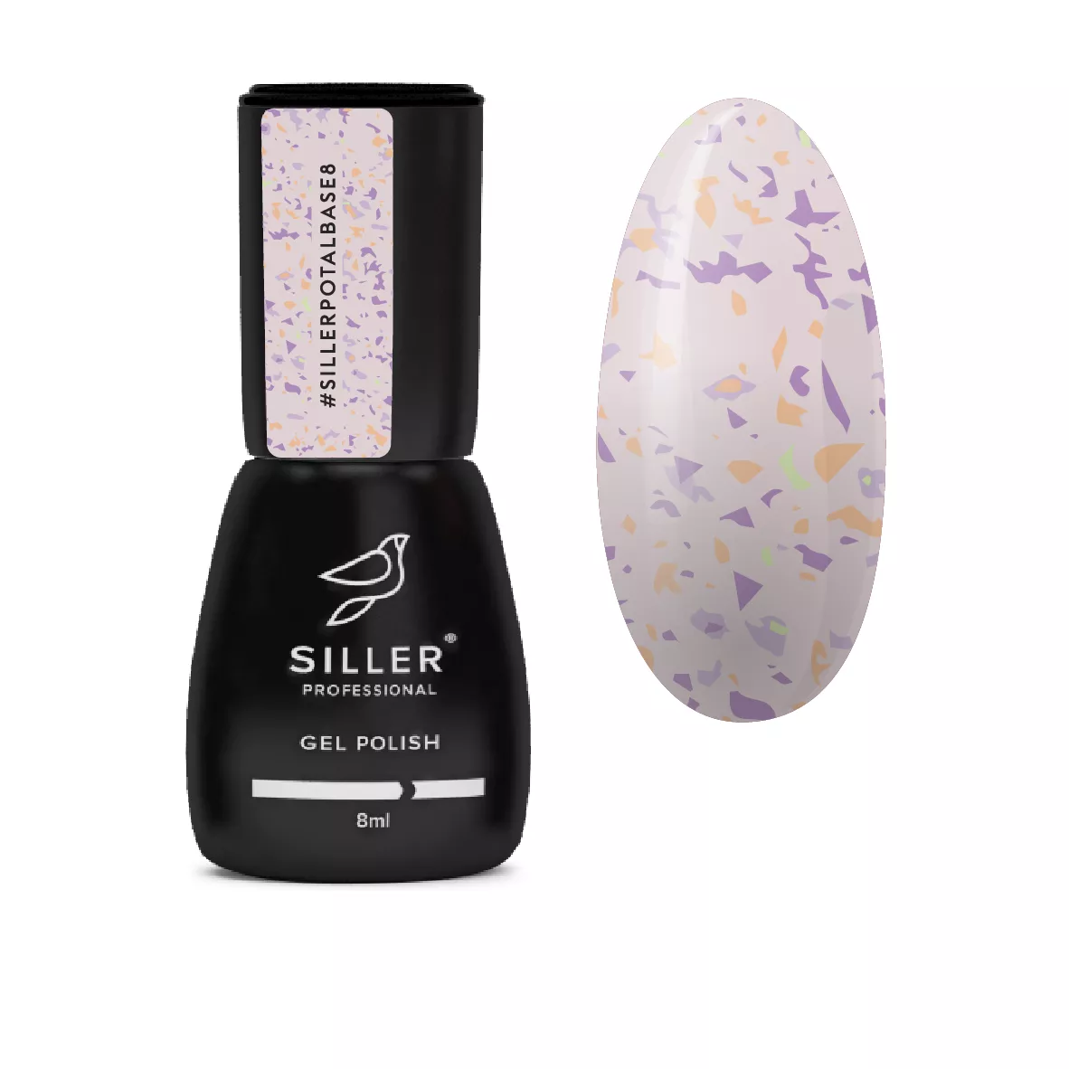 Base Potal від Siller Professional - це колекція ніжних камуфлюючих баз з додаванням яскравих мерехтливих шматочків поталі, які точно не залишать байдужими як майстра, так і клієнта. Завдяки середній щільності, база легко лягає на нігтик і самовирівнюється по нігтьовій пластині, що робить її дуже зручною у використанні. *Важливо! Під Base Potal ми наносимо Rubber base на натуральний ніготь, полімеризуючи 60 сек. Далі можете покривати базу як кольоровим гель-лаком, так і просто топом для завершення манікюру. Siller Potal Base №8 рожева з дрібною кольоровою поталлю.
