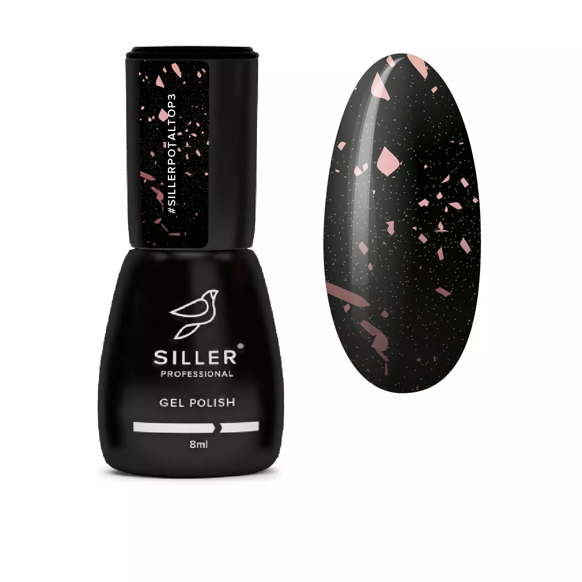 Закріплювач Siller є дуже стійким - завдяки поліпшеній формулі топ надійно захищає кольоровий гель-лак від зовнішніх факторів. Максимальна кількість пластівців, дозволяє ідеально нанести топ з першого шару. Консистенція не густа, тому топ лягає тонким шаром і не розтікається. Топ з поталлю має відмінну стійкість і не дає утворенню сколів, відшарувань і тріщин, виглядає ідеально при тривалій носці. На заключному етапі манікюру нанести топ. Його завдання закріпити покриття і надати нігтям блиск. Полімеризувати в UV-лампі (36 Вт) - 2 хв або LED-лампі - 30-60 с. Нанести масло для кутикули. Top Siller Potal - топ для гель-лаку без липкого шару і з декоративною добавкою у вигляді рожево-золотої поталі.