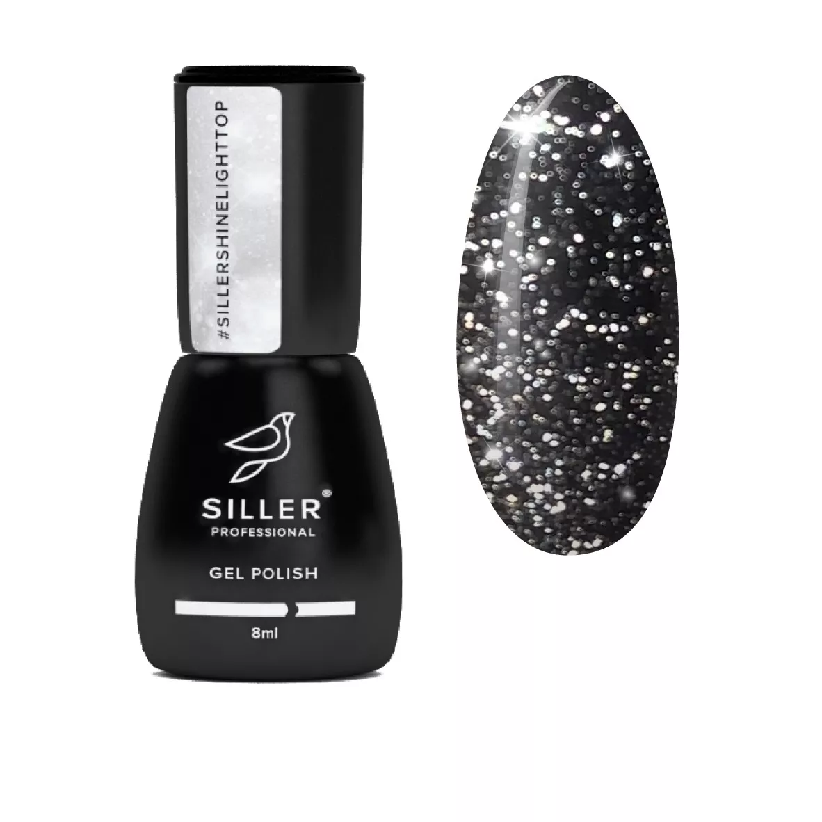 Siller Shine Light No Wipe (світловідбиваючий) — топ для гель-лаку без липкого шару зі сріблястими світловідбиваючими частинками в складі.