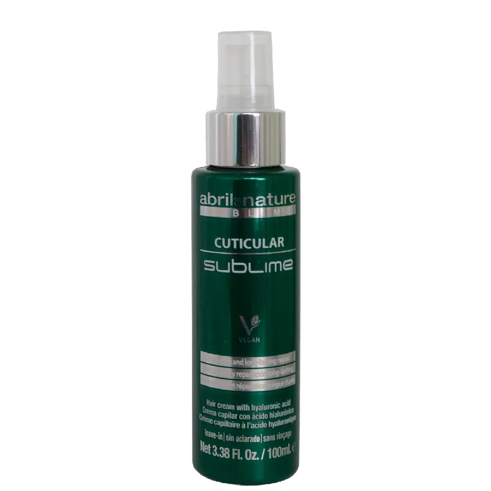Сироватка суперзволожувальна Cuticular SUBLIME рекомендується для пошкодженого волосся. Засіб потужно лікує кутикулу волосся, відновлюючи їх початкову гладку структуру, відновлює внутрішні та зовнішні пошкоджені волокна і надає діамантового переливу. Косметичний засіб утворює на пасмах своєрідний «щит», який захищатиме їх від впливів укладальних бьюті-гаджетів та негативних еко-факторів. У процесі регулярного використання сироватки також волосся стає більш живим і еластичним, шовковистим і легким, як пір`їни. Забезпечує миттєве відновлення волосся, має довготривалий ефект. Особливості продукту: Активні компоненти: гіалуронова кислота, гідролізований рослинний білок ПГ-пропіл сіланетроіл, касторову олію, гіалуронову кислоту, яблучні стовбурові клітини, екстракт чорної ікри, гліцерин, пропіленгліколь, лімонен. Застосування: масажними рухами нанести на чисте вологе волосся по всій довжині, відступивши від коренів на 2-3 см. Не змивати.Сироватка суперзволожувальна для пошкодженного волосся з гіалуроновою кислотою Cuticular SUBLIME Abril et Nature