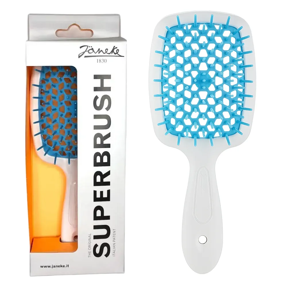 Щітка з м`якими кінчиками для волосся SUPERBRUSH Janeke ніжно та ефективно розплутує волосся, а особлива перфорація у вигляді бджолиного вулика дозволяє дуже швидко його висушити.